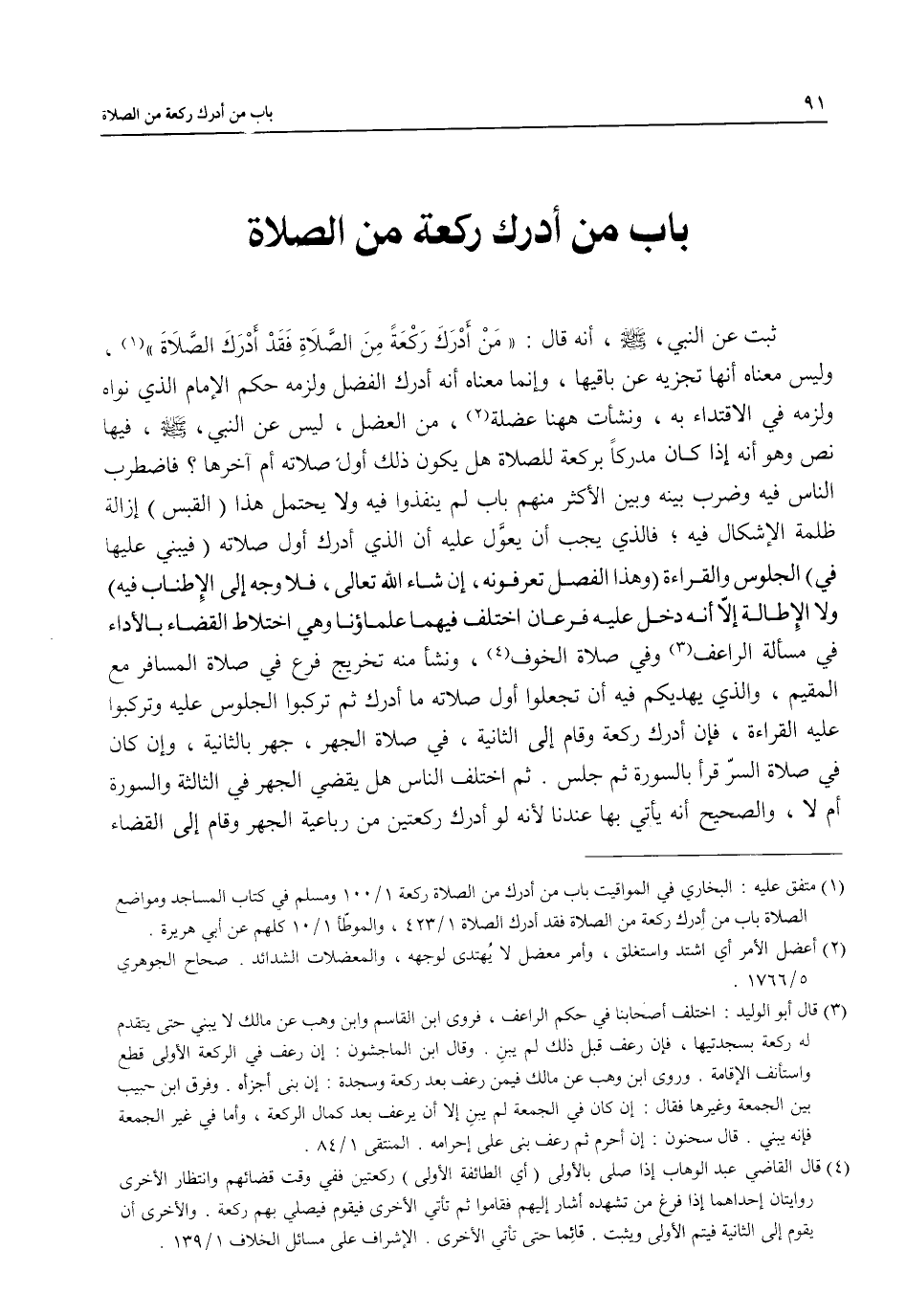 (¬1) متفق عليه: البخاري في المواقت باب من أدرك من الصلاة ركعة 1/ 100 ومسلم في كتاب المساجد ومواضع الصلاة باب من أدرك ركعة من الصلاة فقد أدرك الصلاة 1/ 423، والموطّأ 1/ 10 كلهم عن أبي هريرة.