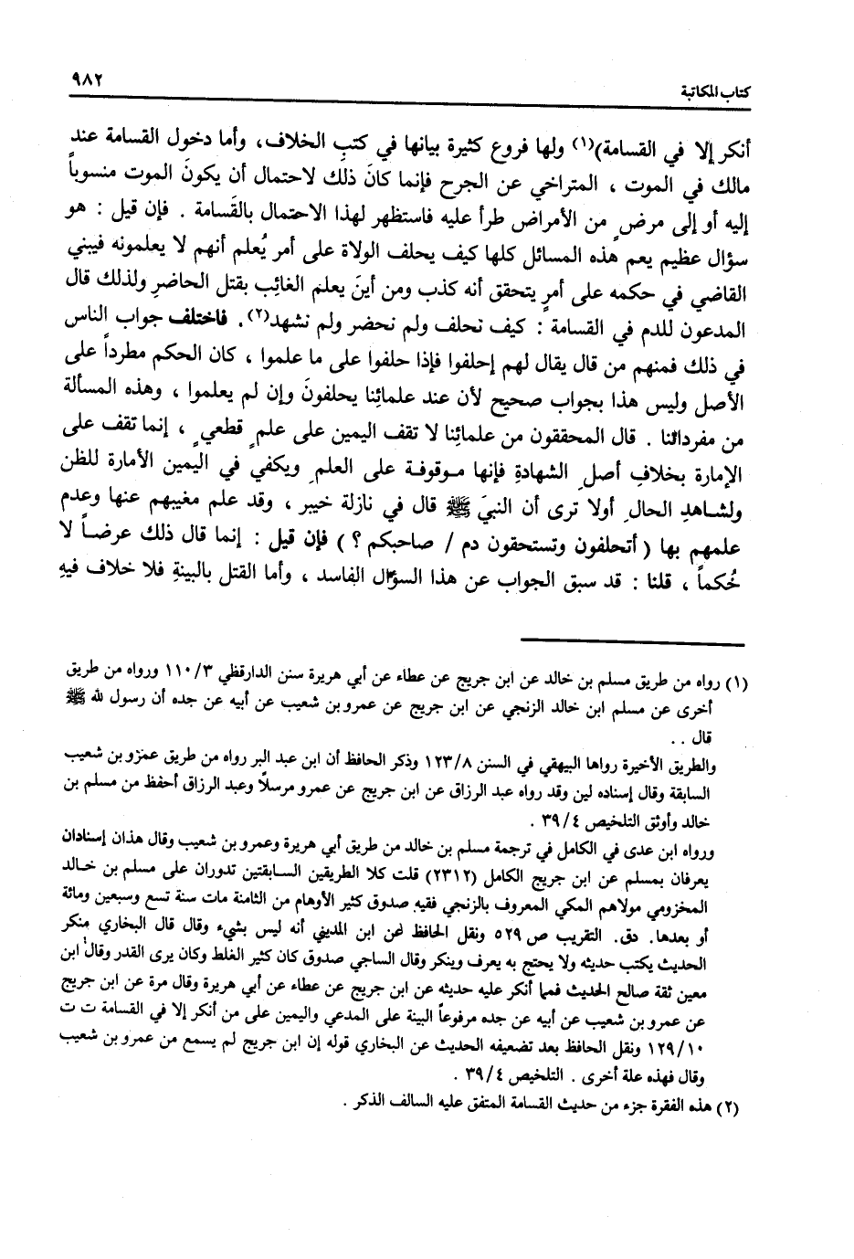 (¬2) هذه الفقرة جزء من حديث القسامة المتفق عليه السالف الذكر.