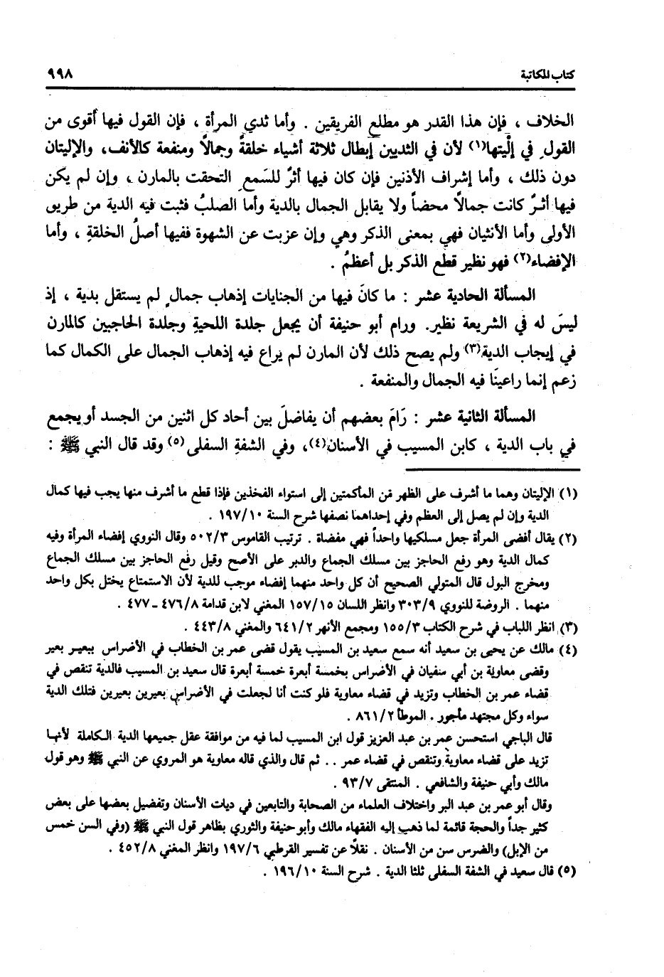 المسألة الثانية عشر: رَامَ بعضهم أن يفاضلَ بين أحاد كل اثنين من الجسد أو بجمع في باب الدية، كابن المسيب في الأسنان (¬4)، وفي الشفةِ السفلى (¬5) وقد قال النبي - صلى الله عليه وسلم -: