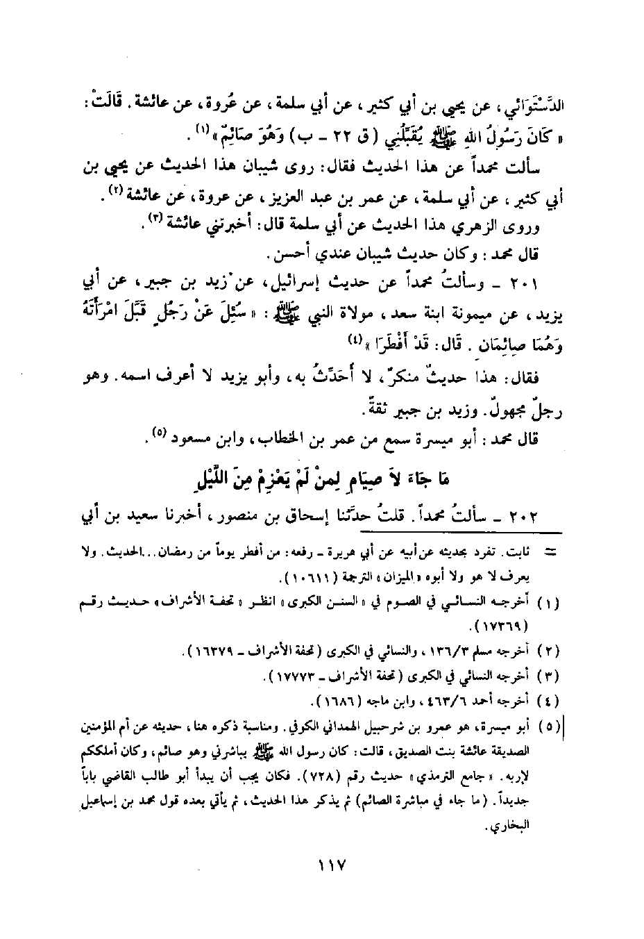 202 - سَأَلْتُ مُحَمَّدًا قُلْتُ: حَدَّثَنَا إِسْحَاقُ بْنُ مَنْصُورٍ , أَخْبَرَنَا سَعِيدُ بْنُ أَبِي -[118]- مَرْيَمَ , قَالَ: حَدَّثَنَا يَحْيَى بْنُ أَيُّوبَ , عَنْ عَبْدِ اللَّهِ بْنِ أَبِي بَكْرٍ , عَنِ ابْنِ شِهَابٍ , عَنْ سَالِمِ بْنِ عَبْدِ اللَّهِ , عَنْ أَبِيهِ , عَنْ حَفْصَةَ , عَنِ النَّبِيِّ صَلَّى اللهُ عَلَيْهِ وَسَلَّمَ قَالَ: «§مَنْ لَمْ يُجْمِعِ الصِّيَامَ قَبْلَ الْفَجْرِ فَلَا صِيَامَ لَهُ» . فَقَالَ: عَنْ سَالِمٍ , عَنْ أَبِيهِ , عَنْ حَفْصَةَ , عَنِ النَّبِيِّ صَلَّى اللهُ عَلَيْهِ وَسَلَّمَ خَطَأٌ وَهُوَ حَدِيثٌ فِيهِ اضْطِرَابٌ , وَالصَّحِيحُ عَنِ ابْنِ عُمَرَ مَوْقُوفٌ , وَيَحْيَى بْنُ أَيُّوبَ صَدُوقٌ
