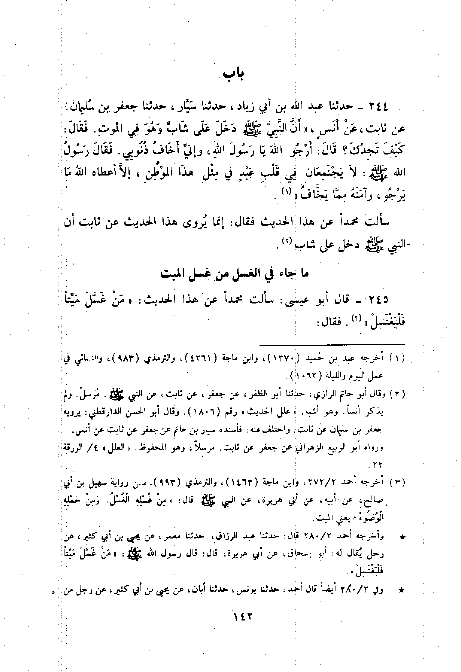 245 - قَالَ أَبُو عِيسَى: سَأَلْتُ مُحَمَّدًا عَنْ هَذَا الْحَدِيثِ «مَنْ غَسَّلَ مَيِّتًا فَلْيَغْتَسِلْ» . فَقَالَ: رَوَى بَعْضُهُمْ عَنْ سُهَيْلِ بْنِ أَبِي صَالِحٍ , عَنْ إِسْحَاقَ مَوْلَى زَائِدَةَ , عَنْ أَبِي هُرَيْرَةَ مَوْقُوفًا. قَالَ مُحَمَّدٌ: إِنَّ أَحْمَدَ بْنَ حَنْبَلٍ وَعَلِيَّ بْنَ عَبْدِ اللَّهِ قَالَا: لَا يَصِحُّ فِي هَذَا الْبَابِ شَيْءٌ.