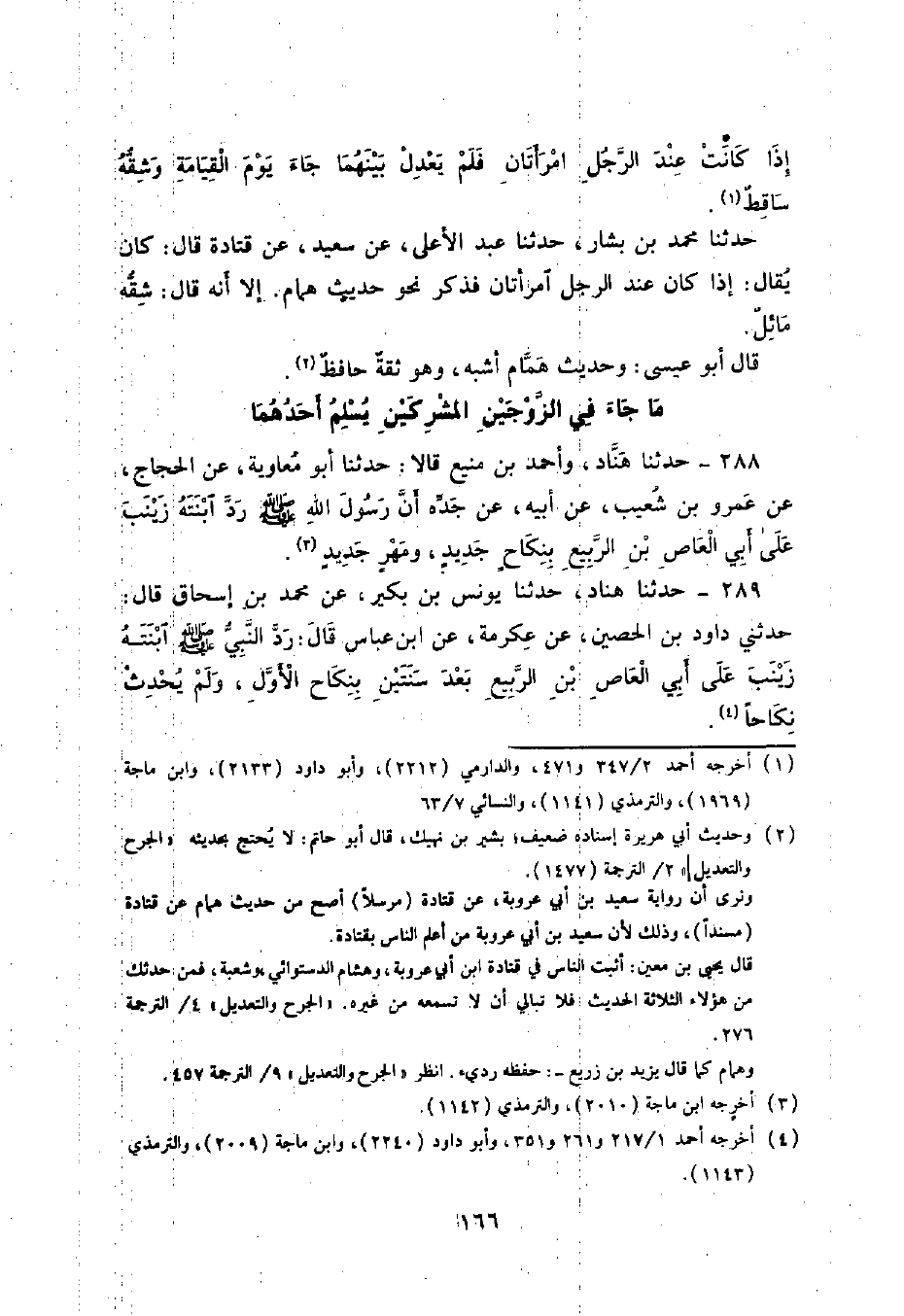 288 - حَدَّثَنَا هَنَّادٌ , وَأَحْمَدُ بْنُ مَنِيعٍ , قَالَا: حَدَّثَنَا أَبُو مُعَاوِيَةَ , عَنِ الْحَجَّاجِ , عَنْ عَمْرِو بْنِ شُعَيْبٍ , عَنْ أَبِيهِ , عَنْ جَدِّهِ , §أَنَّ رَسُولَ اللَّهِ صَلَّى اللهُ عَلَيْهِ وَسَلَّمَ رَدَّ ابْنَتَهُ زَيْنَبَ عَلَى أَبِي الْعَاصِ بْنِ الرَّبِيعِ بِنِكَاحٍ جَدِيدٍ وَمَهْرٍ جَدِيدٍ "