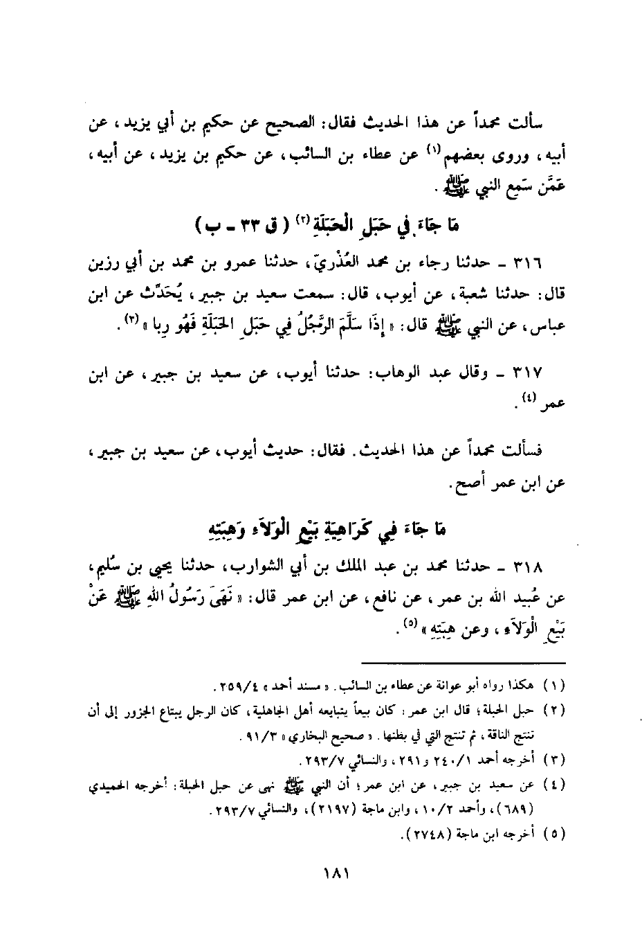 316 - حَدَّثَنَا رَجَاءُ بْنُ مُحَمَّدٍ الْعُذْرِيُّ , حَدَّثَنَا عَمْرُو بْنُ مُحَمَّدِ بْنِ أَبِي رَزِينٍ , قَالَ: حَدَّثَنَا شُعْبَةُ , عَنْ أَيُّوبَ , قَالَ: سَمِعْتُ سَعِيدَ بْنَ جُبَيْرٍ , يُحَدِّثُ عَنِ ابْنِ عَبَّاسٍ , عَنِ النَّبِيِّ صَلَّى اللهُ عَلَيْهِ وَسَلَّمَ قَالَ: «§إِذَا سَلَّمَ الرَّجُلُ فِي حَبَلِ الْحَبَلَةِ فَهُوَ رِبًا»
