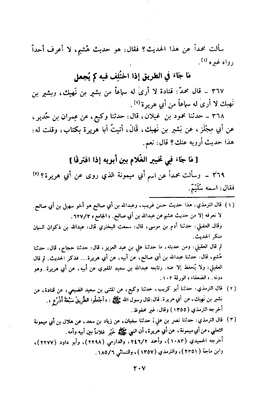367 - قَالَ مُحَمَّدٌ: قَتَادَةُ لَا أَرَى لَهُ سَمَاعًا مِنْ بَشِيرِ بْنِ نَهِيكٍ , وَبَشِيرُ بْنُ نَهِيكٍ لَا أَرَى لَهُ سَمَاعًا مِنْ أَبِي هُرَيْرَةَ.