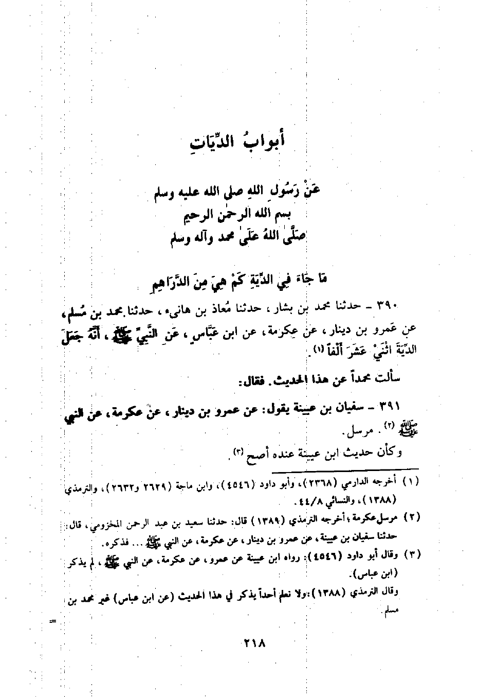 §أَبْوَابُ الدِّيَاتِ عَنْ رَسُولِ اللَّهِ صَلَّى اللهُ عَلَيْهِ وَسَلَّمَ بِسْمِ اللَّهِ الرَّحْمَنِ الرَّحِيمِ صَلَّى اللَّهُ عَلَى مُحَمَّدٍ وَآلِهِ وَسَلَّمَ