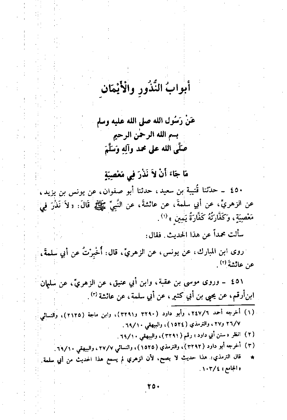 §أَبْوَابُ النُّذُورِ وَالْأَيْمَانِ عَنْ رَسُولِ اللَّهِ صَلَّى اللهُ عَلَيْهِ وَسَلَّمَ بِسْمِ اللَّهِ الرَّحْمَنِ الرَّحِيمِ صَلَّى اللَّهُ عَلَى مُحَمَّدٍ وَآلِهِ وَسَلَّمَ