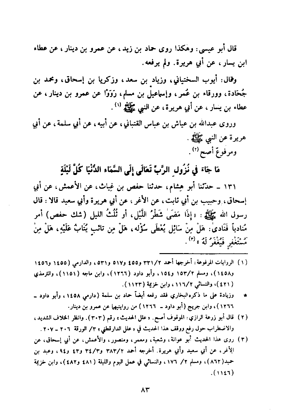 §مَا جَاءَ فِي نُزُولِ الرَّبِّ تَعَالَى إِلَى السَّمَاءِ الدُّنْيَا كُلَّ لَيْلَةٍ
