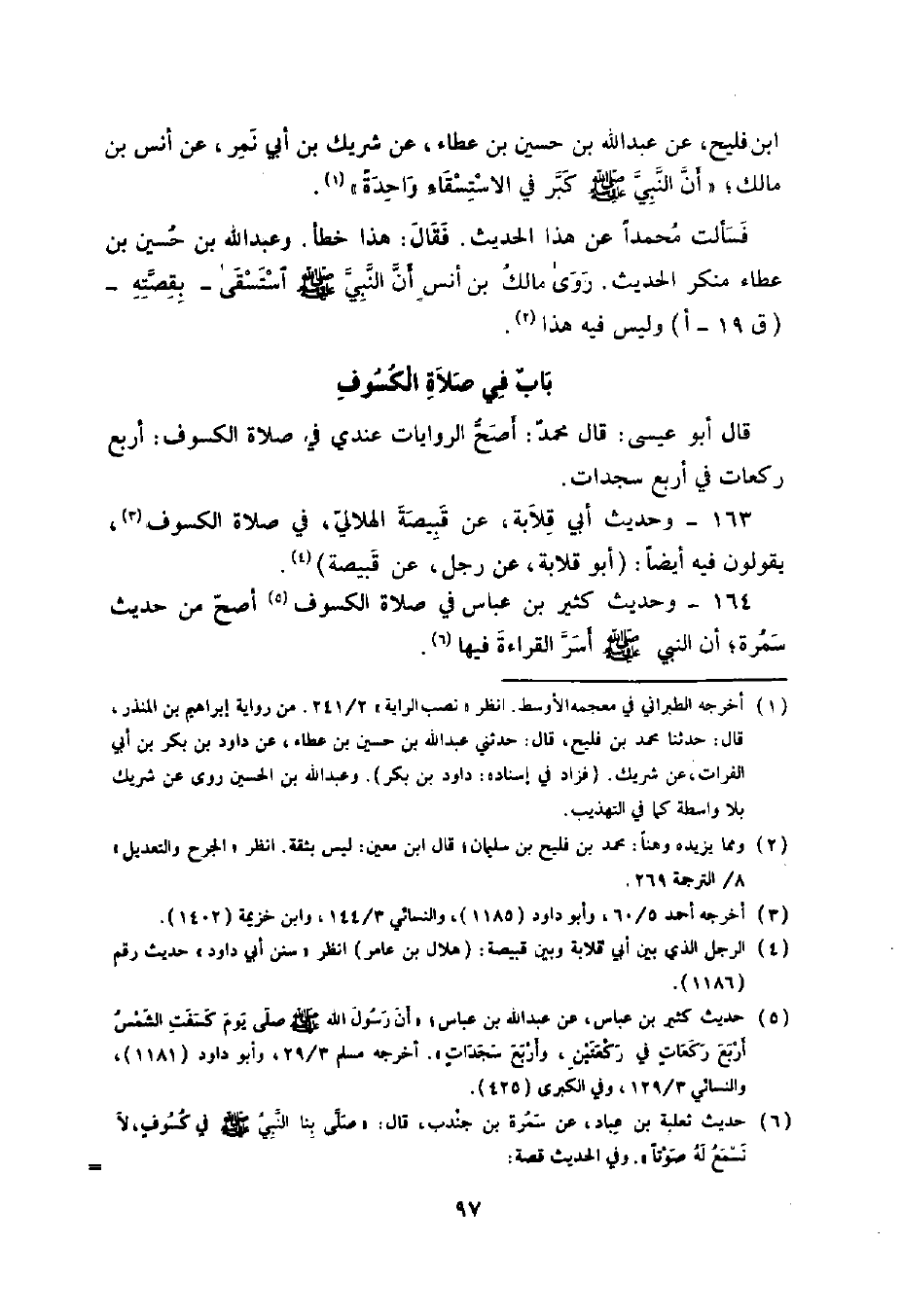 164 - وَحَدِيثُ كَثِيرِ بْنِ عَبَّاسٍ فِي صَلَاةِ الْكُسُوفِ أَصَحُّ مِنْ حَدِيثِ سَمُرَةَ: أَنَّ النَّبِيَّ صَلَّى اللهُ عَلَيْهِ وَسَلَّمَ أَسَرَّ الْقِرَاءَةَ فِيهَا