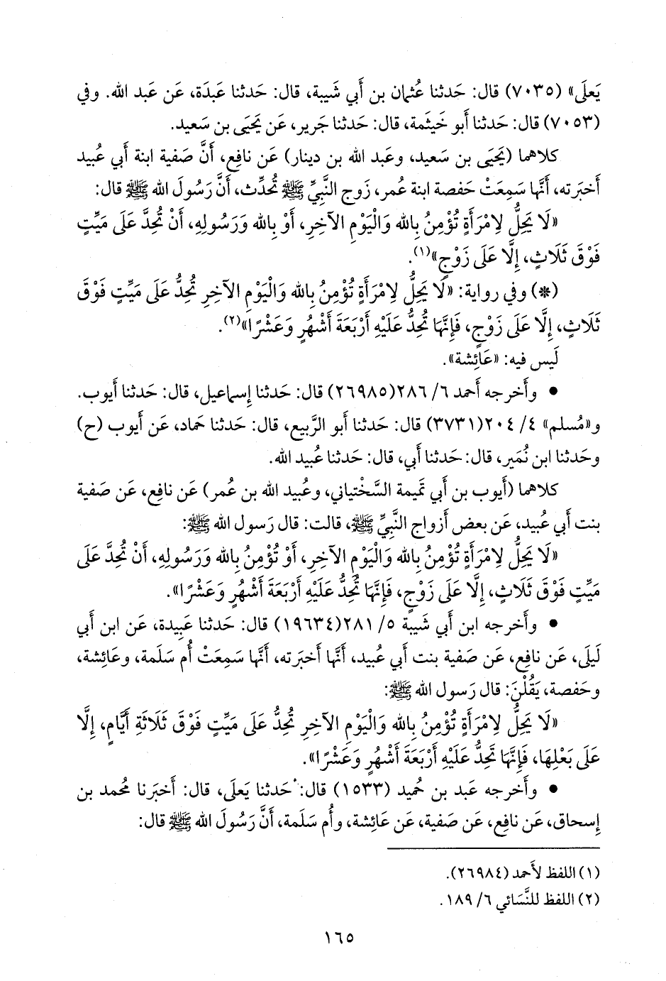 • وأخرجه النَّسَائي ٦/ ١٨٩, وفي «الكبرى» (٥٦٦٧) قال: أخبرنا عبد الله بن الصباح، قال: حدثنا محمد بن سواء، قال: أنبأنا سعيد، عن أيوب، عن نافع، عن صفية بنت أبي عبيد، عن بعض أزواج النبي صَلى الله عَليه وسَلم وعن أُم سلمة، أن النبي صَلى الله عَليه وسَلم قال: