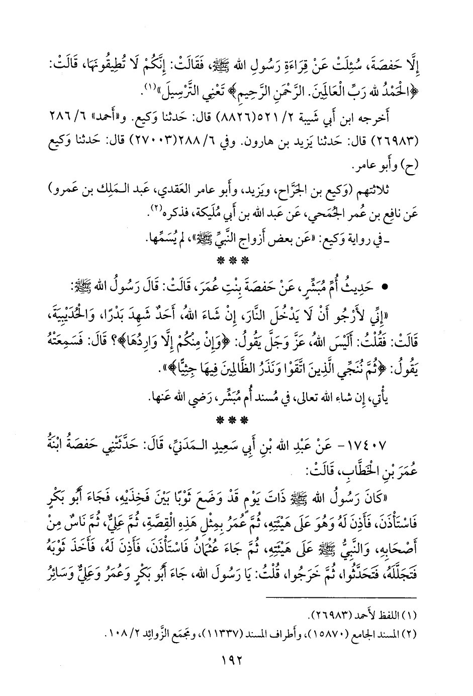 • حديث أم مُبَشِّر، عن حفصة بنت عمر، قالت: قال رسول الله صَلى الله عَليه وسَلم: