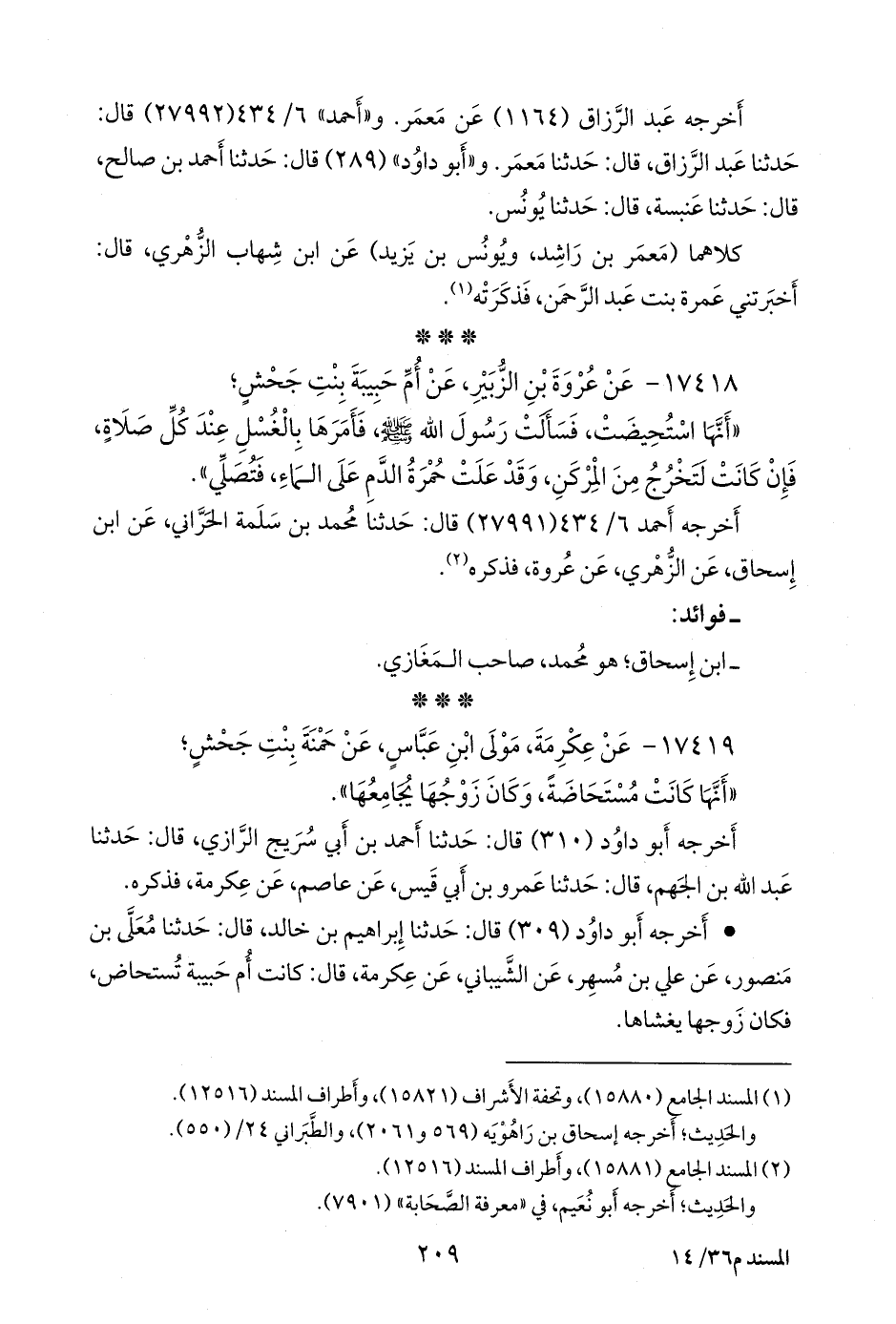 • أَخرجه أَبو داود (٣٠٩) قال: حدثنا إبراهيم بن خالد، قال: حدثنا مُعَلى بن منصور، عن علي بن مُسهِر، عن الشيباني، عن عكرمة، قال: كانت أم حبيبة تستحاض, فكان زوجها يغشاها.
