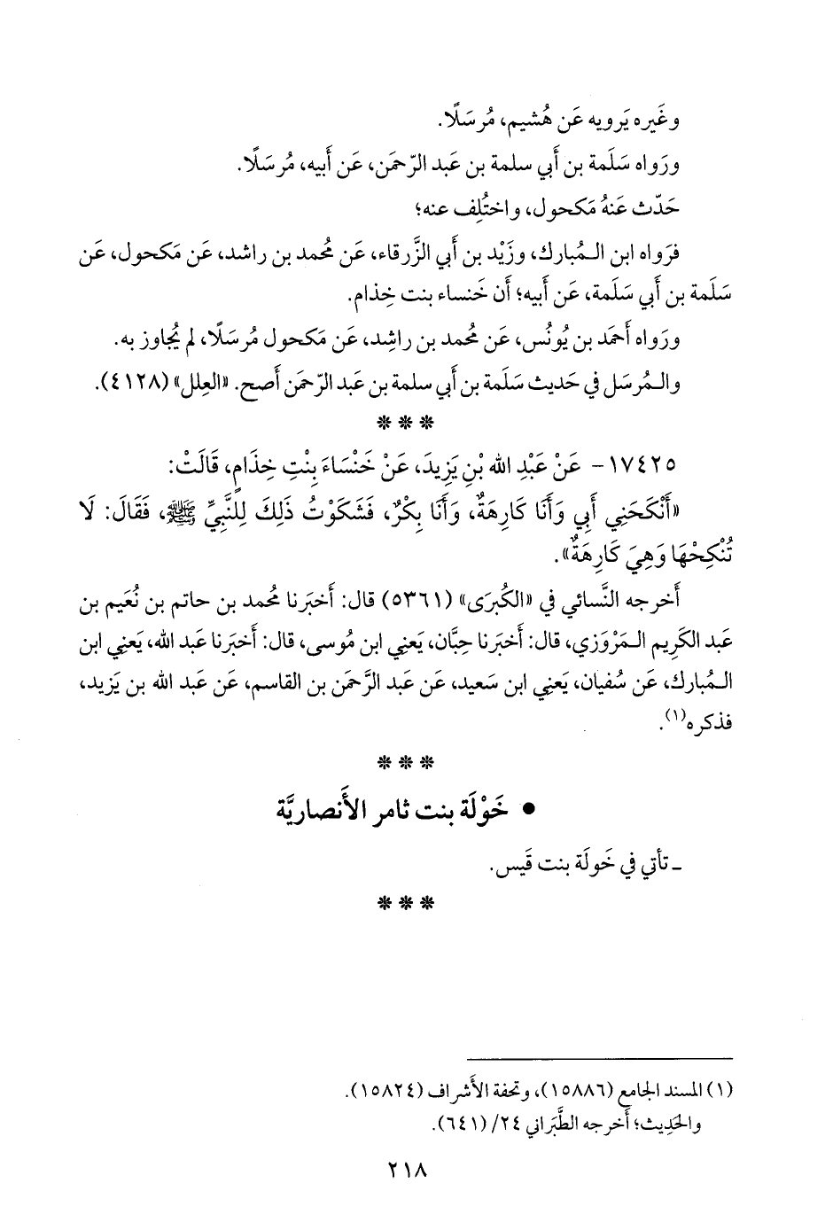 (¬١) المسند الجامع (١٥٨٨٦)، وتحفة الأشراف (١٥٨٢٤).