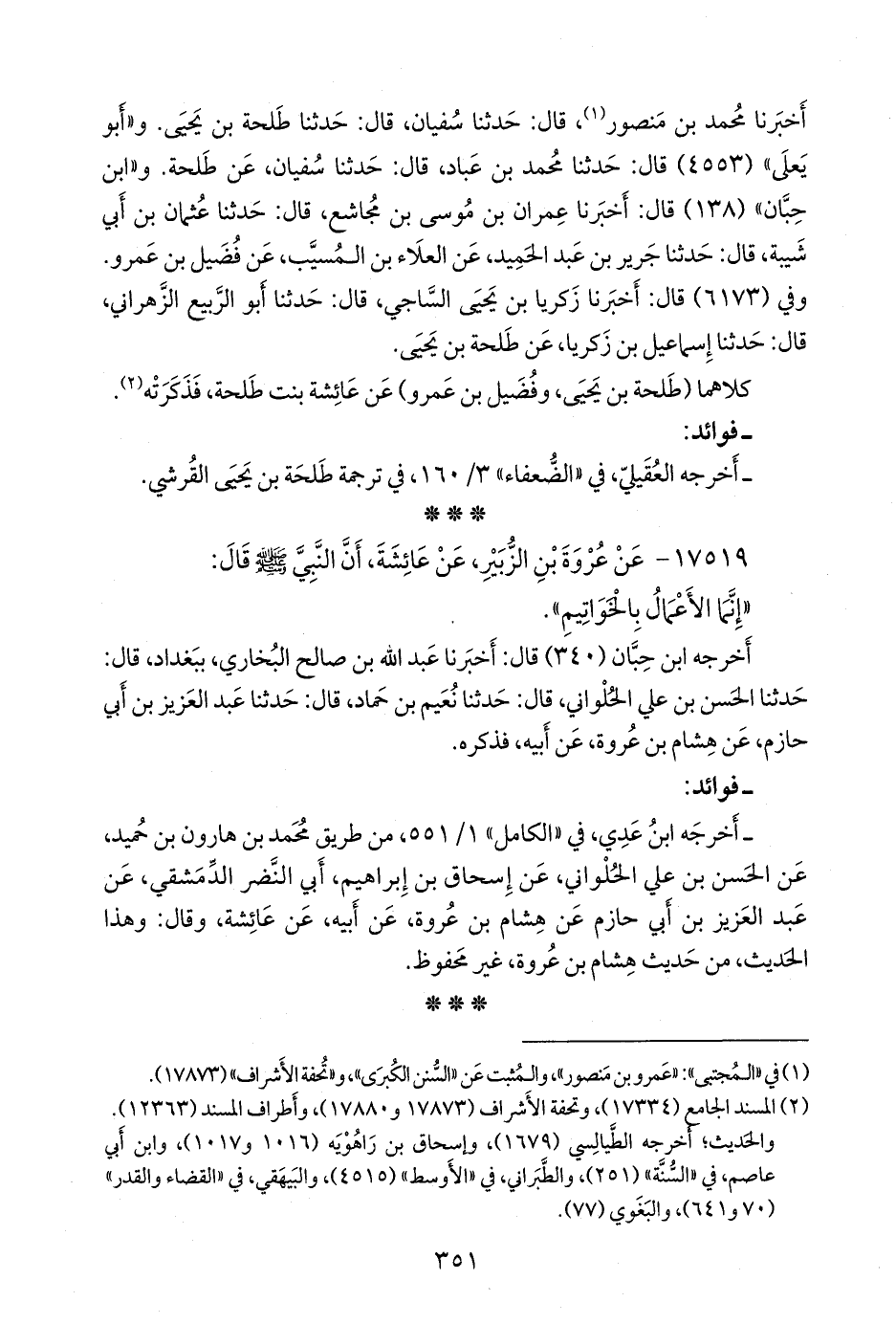 أخرجه ابن حبان (٣٤٠) قال: أخبرنا عبد الله بن صالح البخاري، ببغداد، قال: حدثنا الحسن بن علي الحُلْواني، قال: حدثنا نُعيم بن حماد، قال: حدثنا عبد العزيز بن أبي حازم، عن هشام بن عروة، عن أبيه، فذكره.