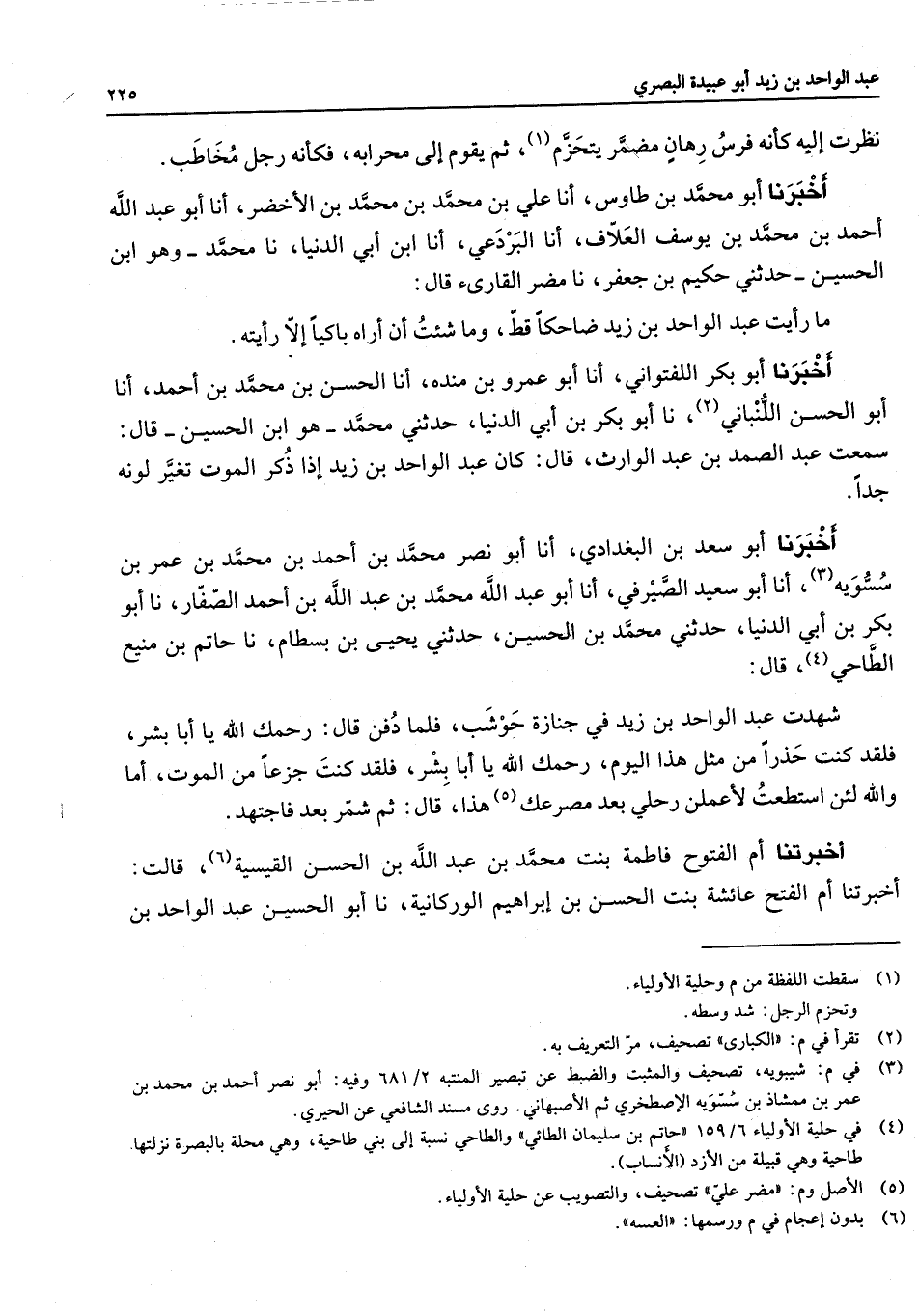 (4) في حلية الاولياء 6 / 159 " حاتم بن سليمان الطائي " والطاحي نسبة إلى بني طاحية وهي محلة بالبصرة نزلتها
