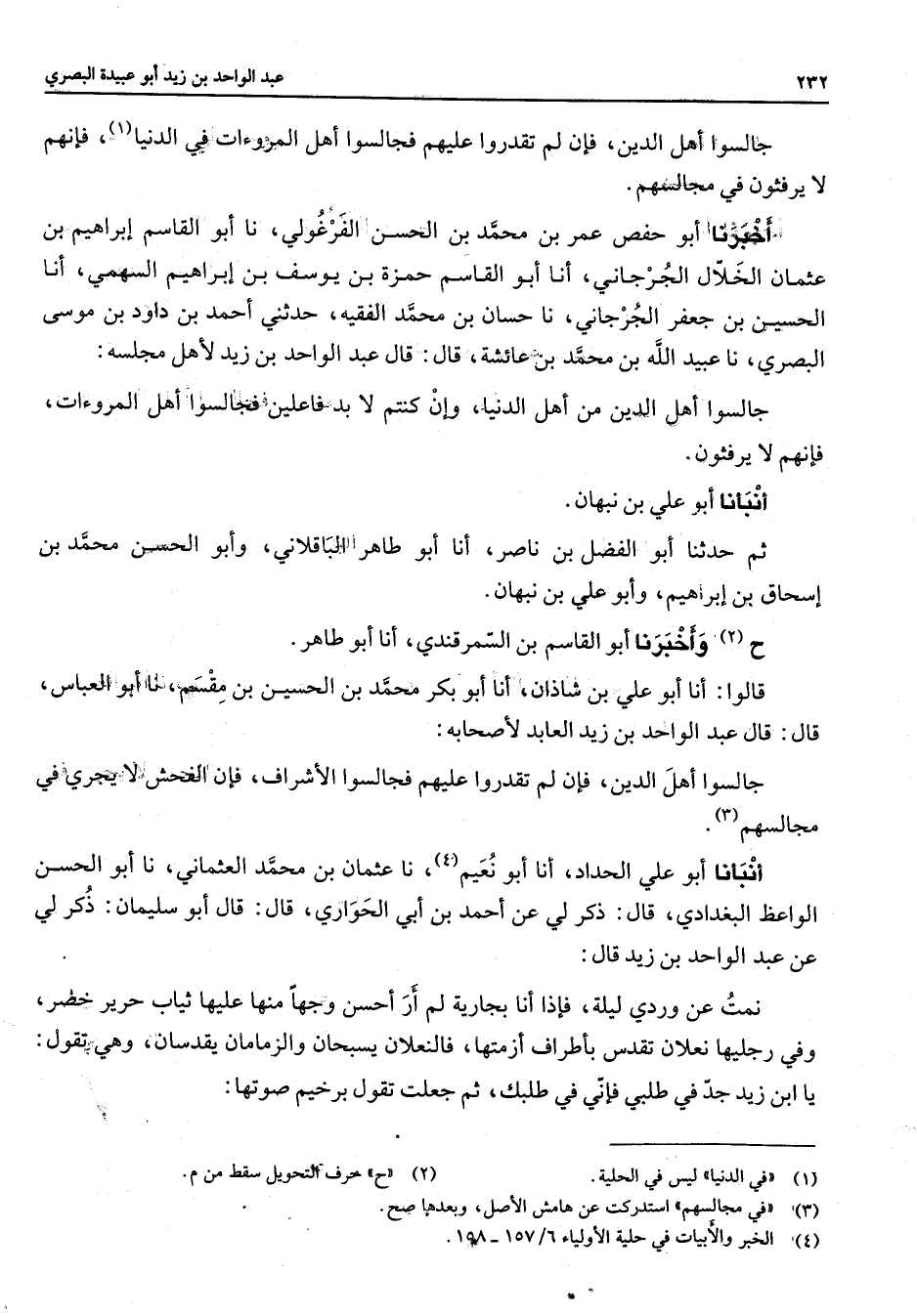 (4) الخبر والابيات في حلية الاولياء 6 / 157 - 158