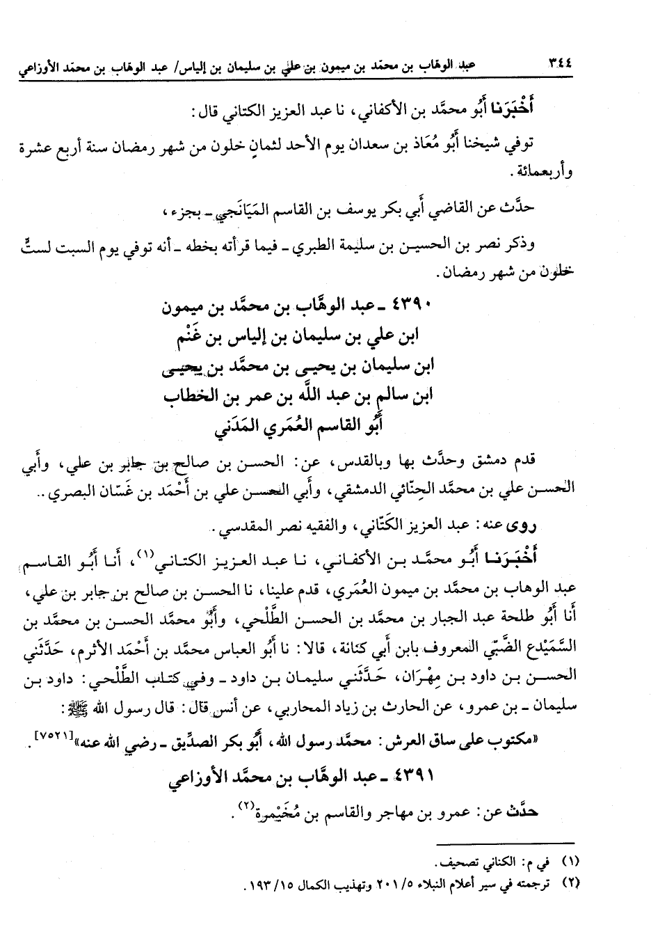 4391 - عبد الوهاب بن محمد الأوزاعي حدث عن عمرو بن مهاجر والقاسم بن مخيمرة (2)