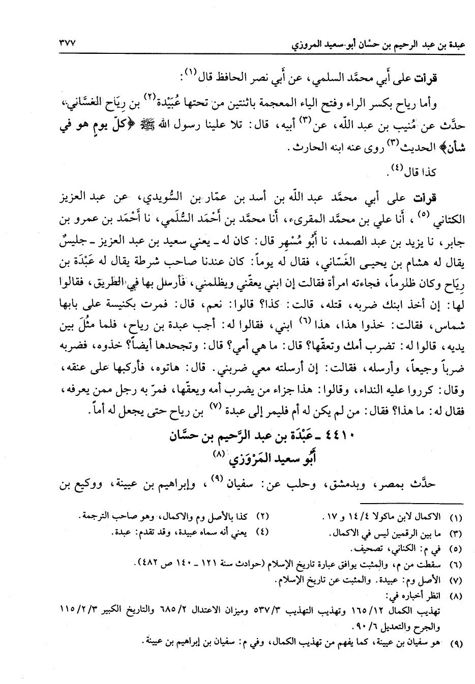 4410 - عبدة بن عبد الرحيم بن حسان أبو سعيد المروزي (8) حدث بمصر وبدمشق وحلب عن سفيان (9) وإبراهيم بن عيينة ووكيع بن
