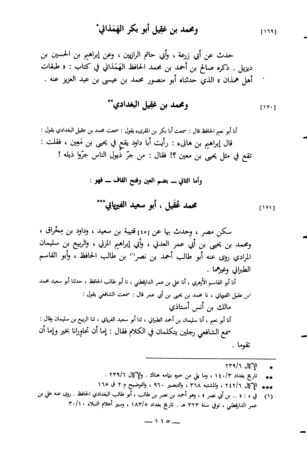 وَمُحَمَّدُ بْنُ عَقِيلٍ أَبُو بَكْرٍ الْهَمَذَانِيُّ