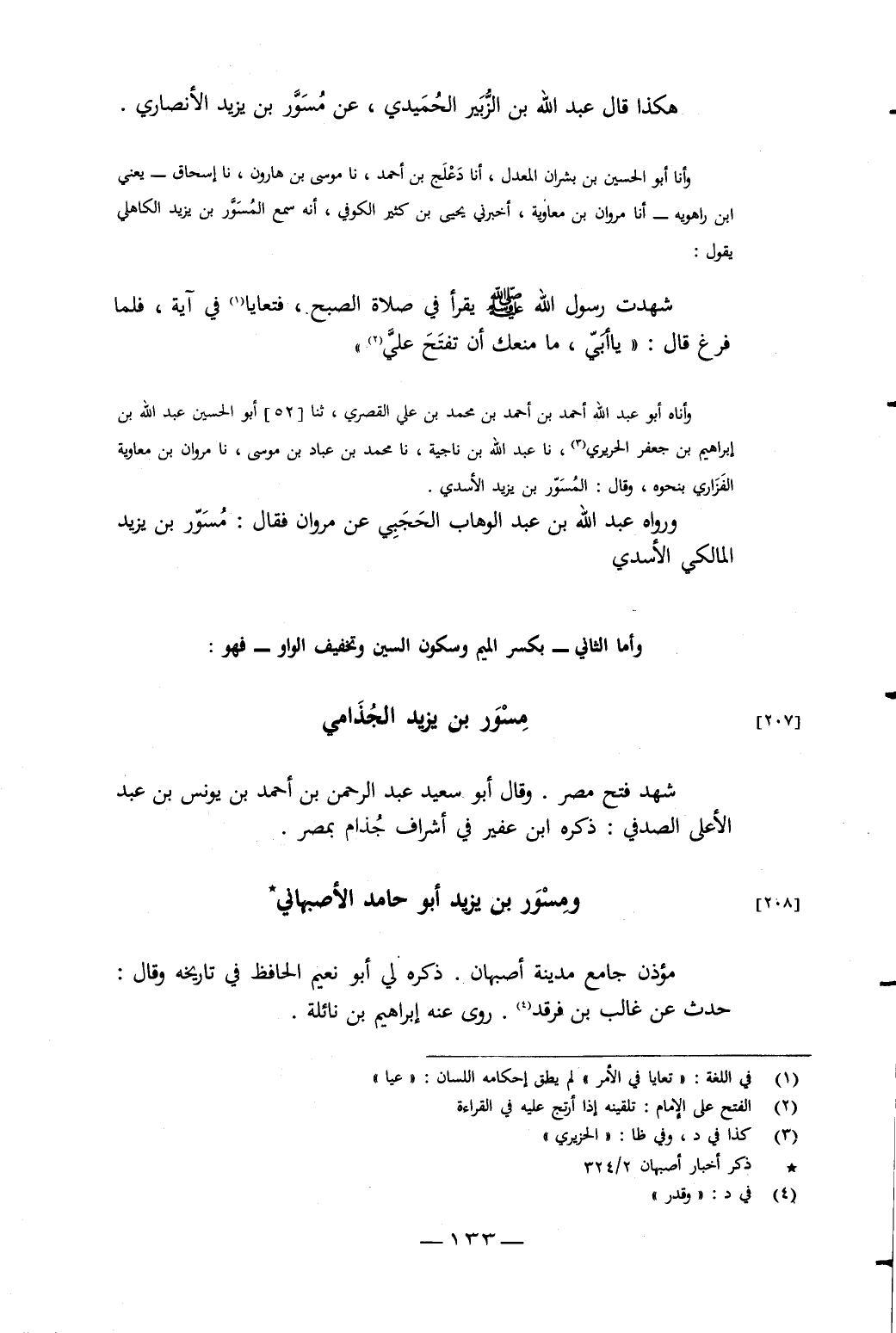 وَأَنَا أَبُو الْحَسَنِ بْنُ بِشْرَانَ الْمُعَدِّلُ، أَنَا دَعْلَجُ بْنُ أَحْمَدَ، نَا مُوسَى بْنُ هَارُونَ، نَا إِسْحَاقُ يَعْنِي ابْنَ رَاهَوَيْهِ، أَنَا مَرْوَانُ بْنُ مُعَاوِيَةَ، أَخْبَرَنِي يَحْيَى بْنُ كَثِيرٍ الْكُوفِيُّ، أَنَّهُ سَمِعَ الْمُسَوَّرَ بْنَ يَزِيدَ الْكَاهِلِيَّ، يَقُولُ: شَهِدْتُ رَسُولَ اللَّهِ صَلَّى اللَّهُ عَلَيْهِ وَسَلَّمَ يَقْرَأُ فِي صَلاةِ الصُّبْحِ، فَتَعَايَا فِي آيَةٍ، فَلَمَّا فَرِغَ قَالَ: «يَا أبي، مَا مَنَعَكَ أَنْ تَفْتَحَ عَلَيَّ»، وَأَنَاهُ أَبُو عَبْدِ اللَّهِ أَحْمَدُ بْنُ أَحْمَدَ بْنِ مُحَمَّدِ بْنِ عَلِيٍّ الْقَصْرِيُّ، ثَنَا أَبُو الْحُسَيْنِ عَبْدُ اللَّهِ بْنُ إِبْرَاهِيمَ بْنِ جَعْفَرٍ الْحَرِيرِيُّ، نَا عَبْدُ اللَّهِ بْنُ نَاجِيَّةَ، نَا مُحَمَّدُ بْنُ عَبَّادِ بْنِ مُوسَى، نَا مَرْوَانُ بْنُ مُعَاوِيَةَ الْفَزَازِيُّ، بِنَحْوِهِ، وَقَالَ الْمُسَوَّرُ بْنُ يَزِيدَ الأَسْدِيُّ وَرَوَاهُ عَبْدُ اللَّهِ بْنُ عَبْدِ الْوَهَّابِ الْحَجَبِيُّ، عَنْ مَرْوَانَ، فَقَالَ: مُسَوَّرُ بْنُ يَزِيدَ الْمَالِكِيُّ الأَسْدِيُّ