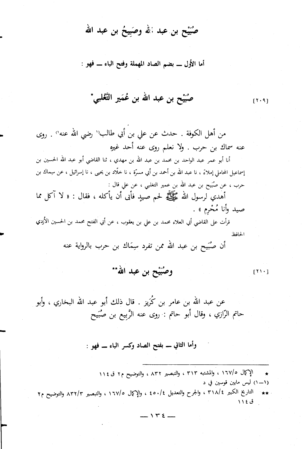 قَرَأْتُ عَلَى الْقَاضِي أَبِي الْعَلاءِ مُحَمَّدُ بْنُ عَلِيِّ بْنِ يَعْقُوبَ، عَنْ أَبِي الْفَتْحِ مُحَمَّدِ بْنِ الْحُسَيْنِ الأَزْدِيِّ الْحَافِظِ أَنَّ صُبَيْحَ بْنَ عَبْدِ اللَّهِ مِمَّنْ تَفَرَّدَ سِمَاكُ بْنُ حَرْبٍ بِالرِّوَايَةِ عَنْهُ