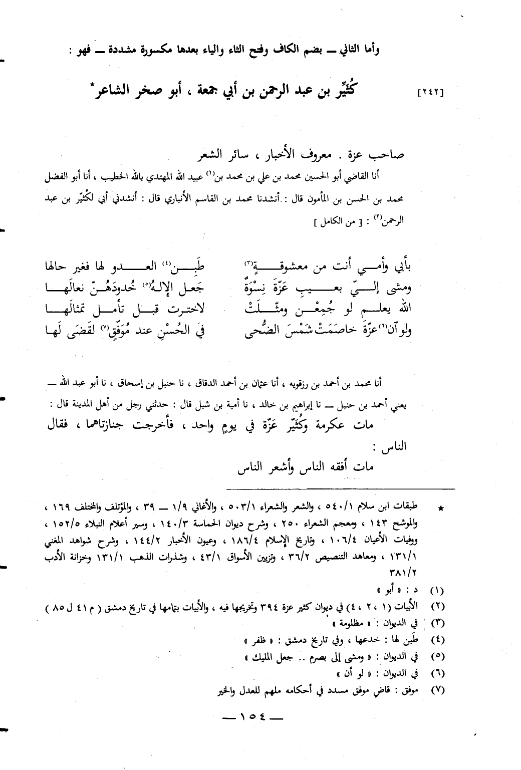 صَاحِبُ عَزَّةَ، مَعْرُوفُ الأَخْبَارِ، سَائِرُ الشِّعْرِ
