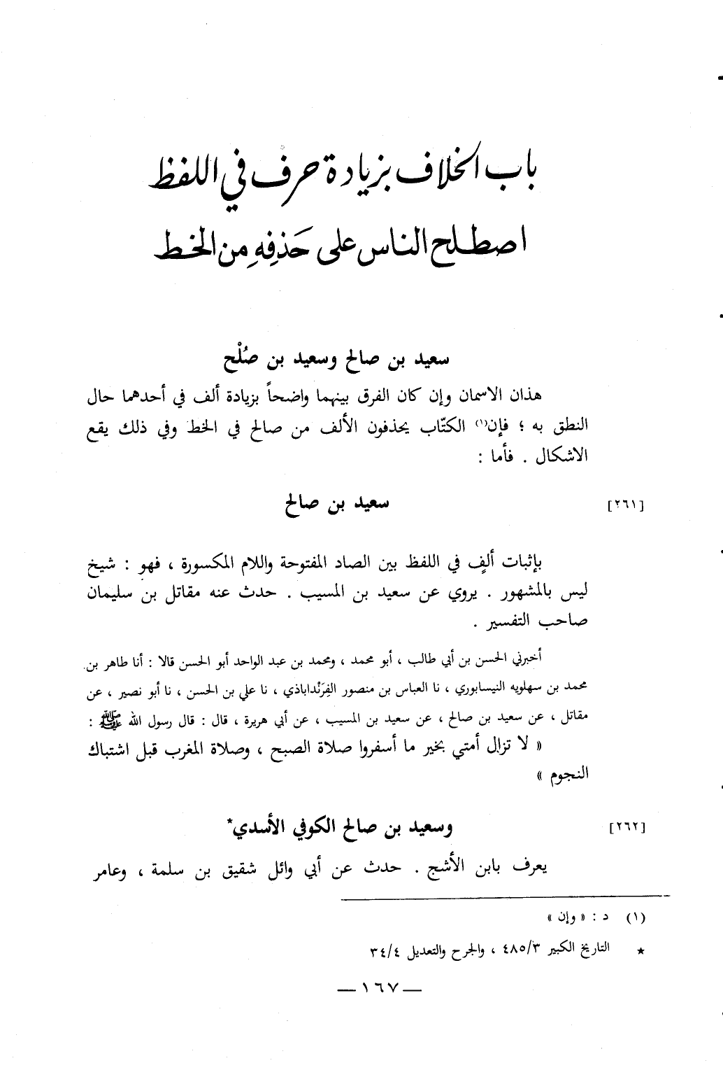 بَابُ الْخِلافِ بِزِيَادَةِ حَرْفٍ فِي اللَّفْظِ اصْطَلَحَ النَّاسُ عَلَى حَذْفِهِ مِنَ الْخَطِّ