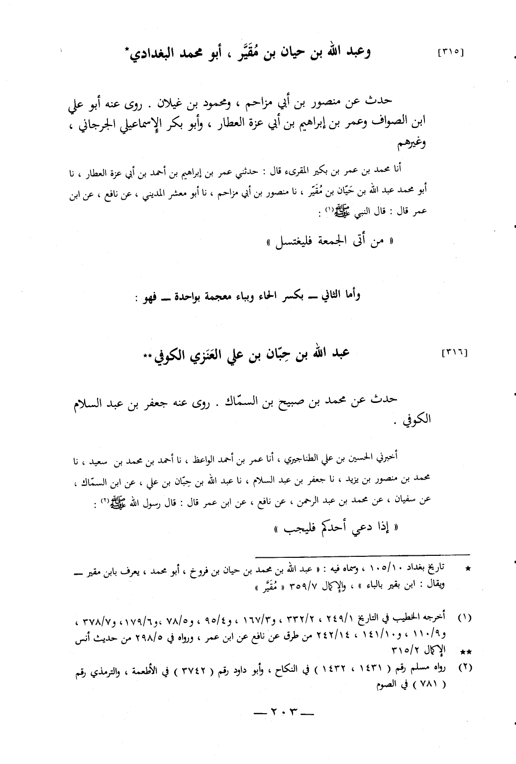 وَعَبْدُ اللَّهِ بْنُ حَيَّانَ بْنِ مُقَيَّرٍ، أَبُو مُحَمَّدٍ الْبَغْدَادِيُّ