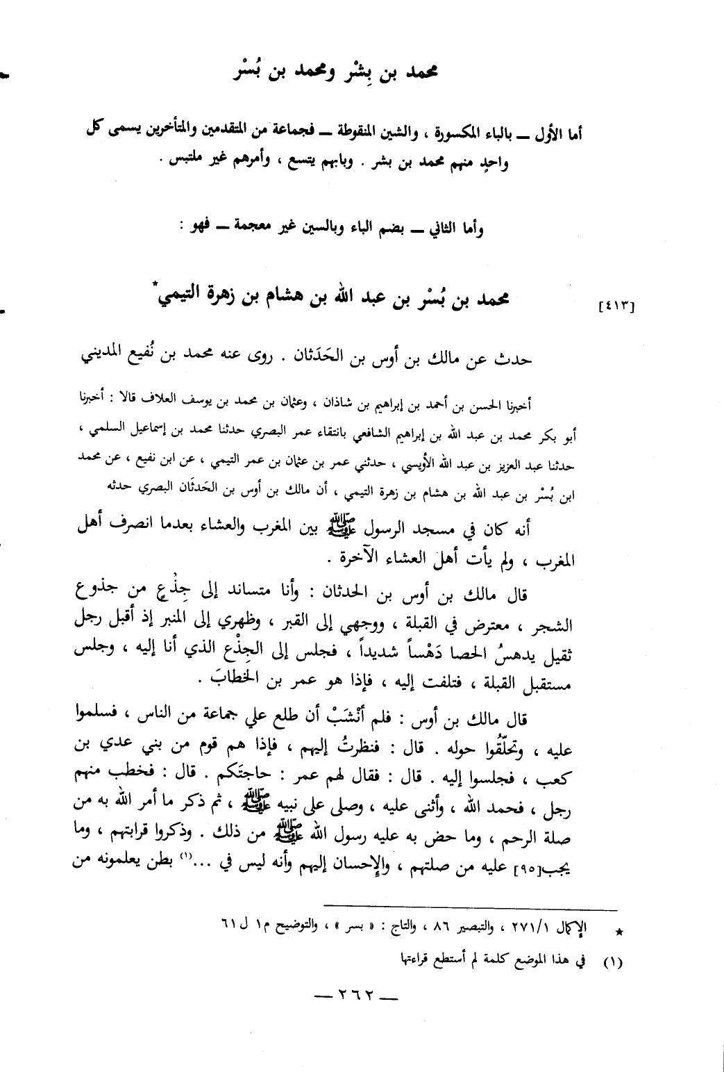 أَمَّا الأَوَّلُ بِالْبَاءِ الْمَكْسُورَةِ وَالشِّينِ الْمَنْقُوطَةِ فَجَمَاعَةٌ مِنَ الْمُتَقَدِّمِينَ وَالْمُتَأَخِّرِينَ يُسَمَّى كُلُّ وَاحِدٍ مِنْهُمْ مُحَمَّدَ بْنَ بِشْرٍ، وَبَابُهُمْ يَتَّسِعُ، وَأَمْرُهُمْ غَيْرُ مُلْتَبِسٍ وَأَمَّا الثَّانِي بِضَمِّ الْبَاءِ وَبِالسِّينِ غَيْرِ مُعْجَمَةٍ فَهُوَ: