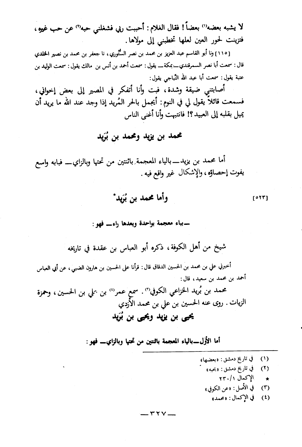 أَمَّا مُحَمَّدُ بْنُ يَزِيدَ بِالْيَاءِ الْمُعْجَمَةِ بِاثْنَتَيْنِ مِنْ تَحْتَهَا وَبِالزَّايِ فَبَابُهُ وَاسِعٌ يَفُوتُ إِحْصَاؤُهُ، وَالإِشْكَالُ غَيْرُ وَاقِعٍ فِيهِ وَأَمَّا
