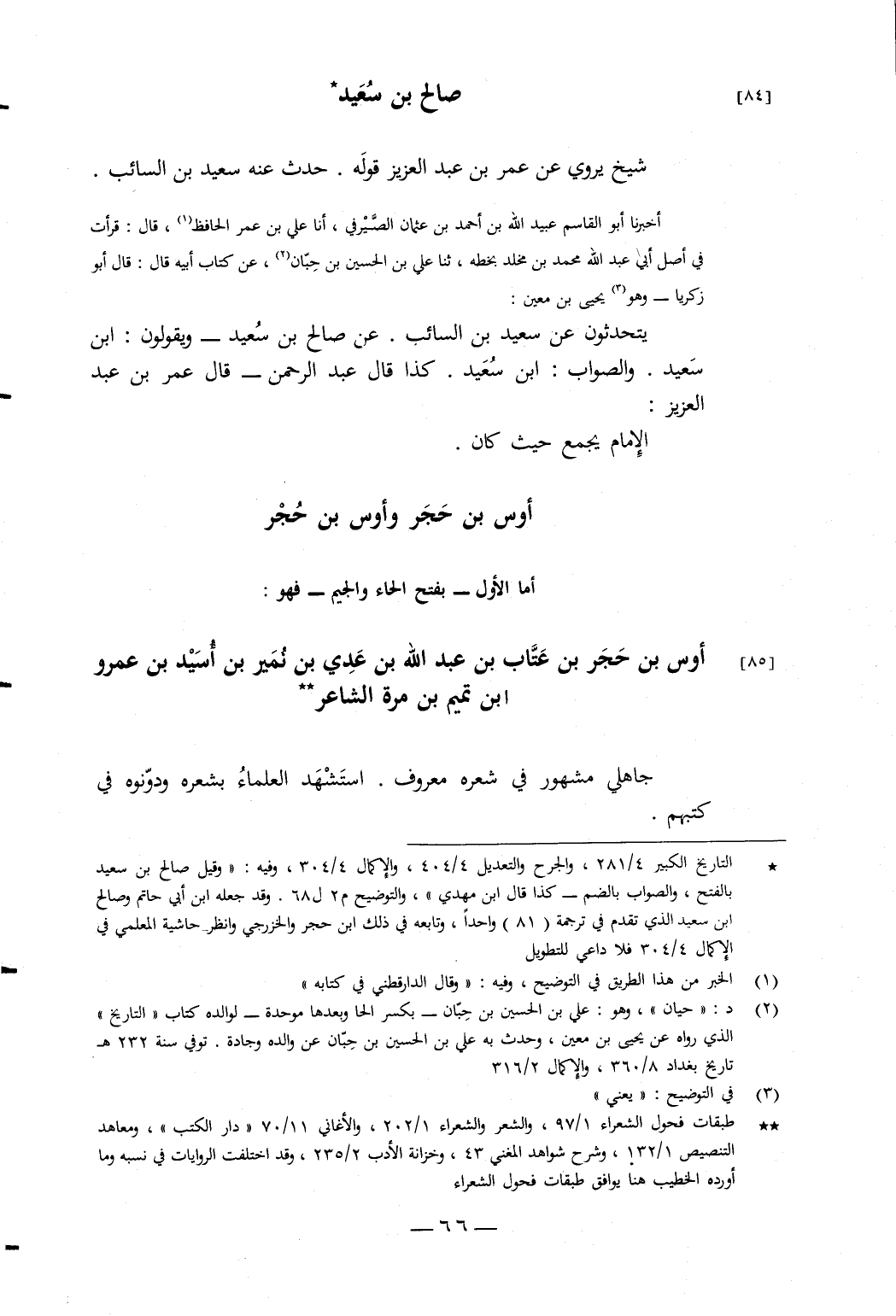 أَخْبَرَنَا أَبُو الْقَاسِمِ عُبَيْدُ اللَّهِ بْنُ أَحْمَدَ بْنِ عُثْمَانَ الصَّيْرَفِيُّ، أَنَا عَلِيُّ بْنُ عُمَرَ الْحَافِظُ، قَالَ: قَرَأْتُ فِي أَصْلِ أَبِي عَبْدِ اللَّهِ مُحَمَّدِ بْنِ مَخْلَدٍ، بِخَطِّهِ، ثَنَا عَلِيُّ بْنُ الْحُسَيْنِ بْنِ حِبَّانَ، عَنْ كِتَابِ أَبِيهِ، قَالَ: قَالَ أَبُو زَكَرِيَّا وَهُوَ يَحْيَى بْنُ مَعِينٍ، يَتَحَدَّثُونَ عَنْ سَعِيدِ بْنِ السَّائِبِ، عَنْ صَالِحِ بْنِ سُعَيْدٍ، وَيَقُولُونَ: ابْنُ سَعِيدٍ، وَالصَّوَابُ: ابْنُ سُعَيْدٍ قَالَ عَبْدُ الرَّحْمَنِ، قَالَ عُمَرُ بْنُ عَبْدِ الْعَزِيزِ: «الإِمَامُ يَجْمَعُ حَيْثُ كَانَ»