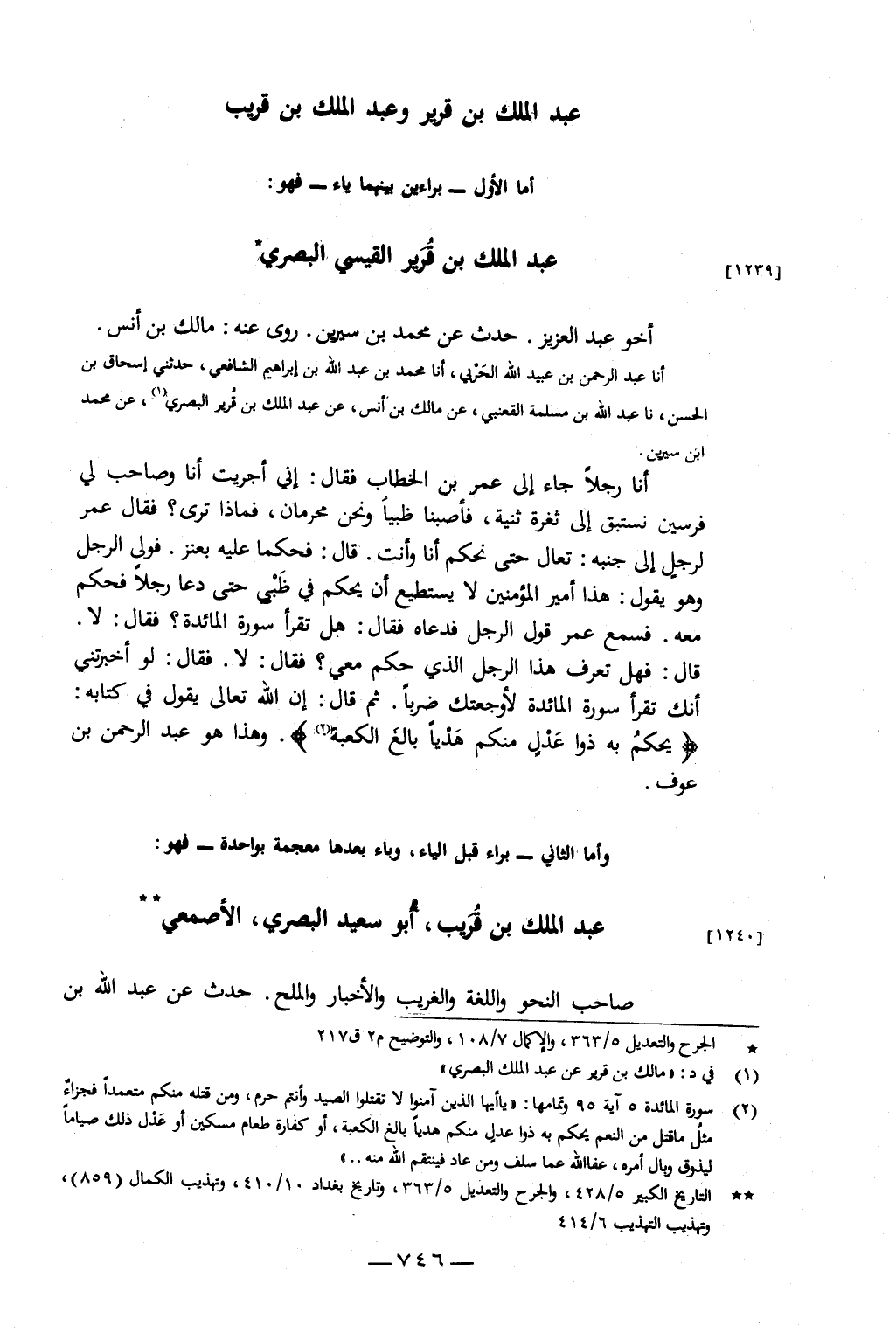 عَبْدُ الْمَلِكِ بْنُ قُرَيْرٍ، وَعَبْدُ الْمَلِكِ بْنُ قَرِيبٍ