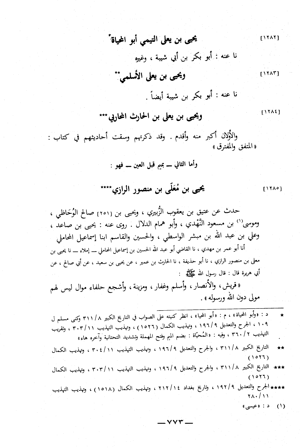 يَحْيَى بْنُ مُعَلَّى بْنِ مَنْصُورٍ الرَّازِيُّ.
