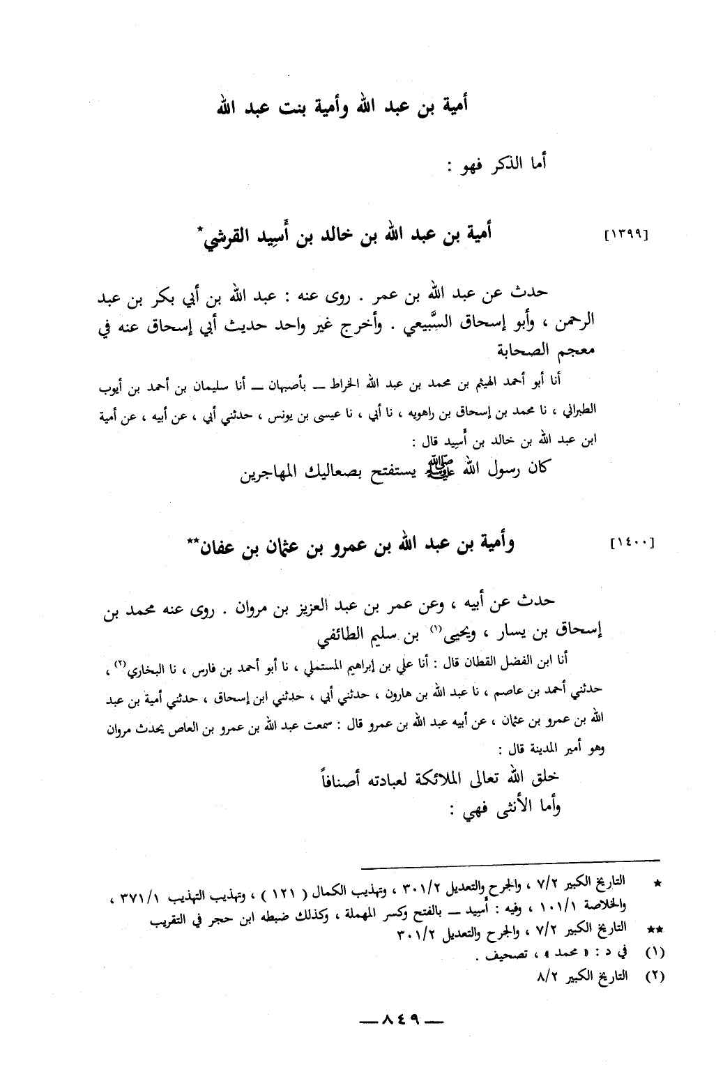 أَنَا ابْنُ الْفَضْلِ الْقَطَّانُ، قَالَ: أَنَا عَلِيُّ بْنُ إِبْرَاهِيمَ الْمُسْتَمْلِيُّ، أَنَا أَبُو أَحْمَدَ بْنُ فَارِسٍ، نا الْبُخَارِيُّ، حَدَّثَنِي أَحْمَدُ بْنُ عَاصِمٍ، نا عَبْدُ اللَّهِ بْنُ هَارُونَ، حَدَّثَنِي أَبِي، حَدَّثَنِي ابْنُ إِسْحَاقَ، حَدَّثَنِي أُمَيَّةُ بْنُ عَبْدِ اللَّهِ بْنِ عَمْرِو بْنِ عُثْمَانَ، عَنْ أَبِيهِ عَبْدِ اللَّهِ بْنِ عَمْرٍو، قَالَ: سَمِعْتُ عَبْدَ اللَّهِ بْنَ عَمْرِو بْنِ الْعَاصِ، يُحَدِّثُ مَرْوَانَ وَهُوَ أَمِيرُ الْمَدِينَةِ، قَالَ: «خَلَقَ اللَّهُ تَعَالَى الْمَلائِكَةَ لِعِبَادَتِهِ أَصْنَافًا»
