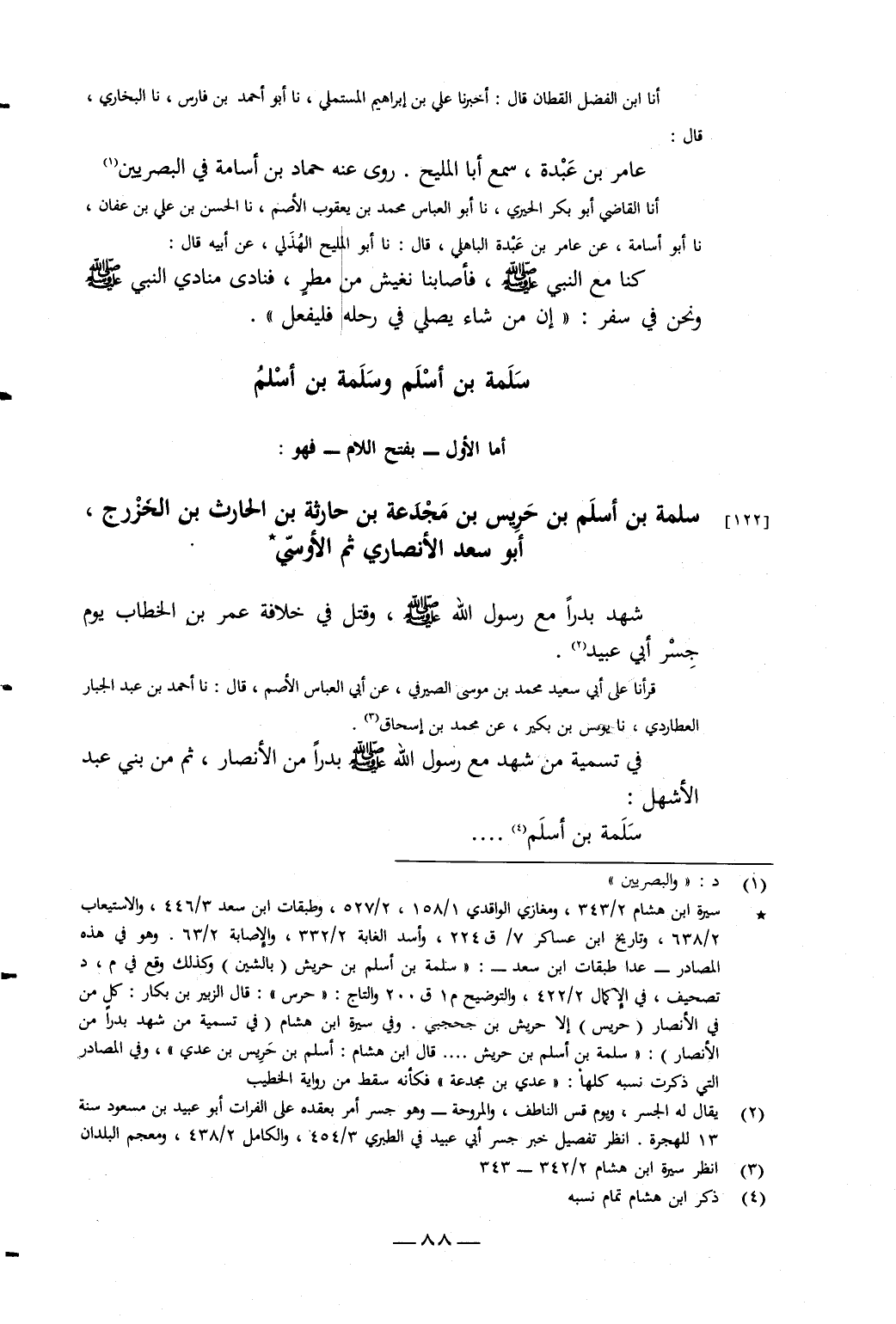 قَرَأْنَا عَلَى أَبِي سَعِيدٍ مُحَمَّدِ بْنِ مُوسَى الصَّيْرَفِيِّ، عَنْ أَبِي الْعَبَّاسِ الأَصَمِّ، قَالَ: نَا أَحْمَدُ بْنُ عَبْدِ الْجَبَّارِ الْعُطَارِدِيُّ، نَا يُونُسُ بْنُ بُكَيْرٍ، عَنْ مُحَمَّدِ بْنِ إِسْحَاقَ فِي تَسْمِيَةِ مَنْ شَهِدَ مَعَ رَسُولِ اللَّهِ صَلَّى اللَّهُ عَلَيْهِ وَسَلَّمَ بَدْرًا مِنَ الأَنْصَارِ، ثُمَّ مِنْ بَنِي عَبْدِ الأَشْهَلِ: سَلَمَةُ بْنُ أَسْلَمَ. . . .