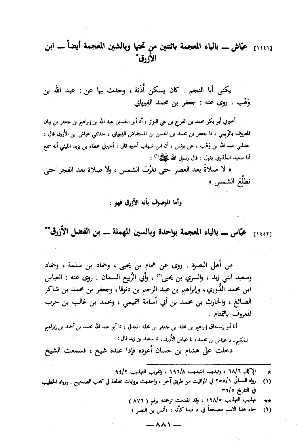 وَأَمَّا الْمَوْصُوفُ بِأَنَّهُ الأَزْرَقُ فَهُوَ عَبَّاسٌ بِالْبَاءِ الْمُعْجَمَةِ بِوَاحِدَةٍ وَبِالسِّينِ الْمُهْمَلَةِ بْنُ الْفَضْلِ الأَزْرَقُ مِنْ أَهْلِ الْبَصْرَةِ.