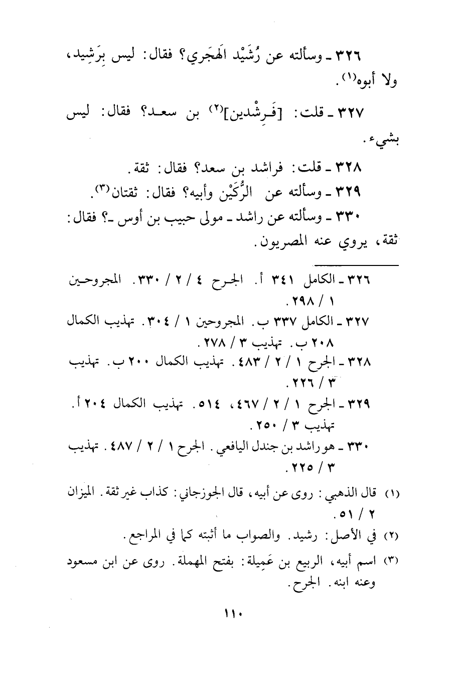 330 - وَسَأَلته عَن رَاشد مولى حبيب بن أَوْس فَقَالَ ثِقَة يرْوى عَنهُ المصريون