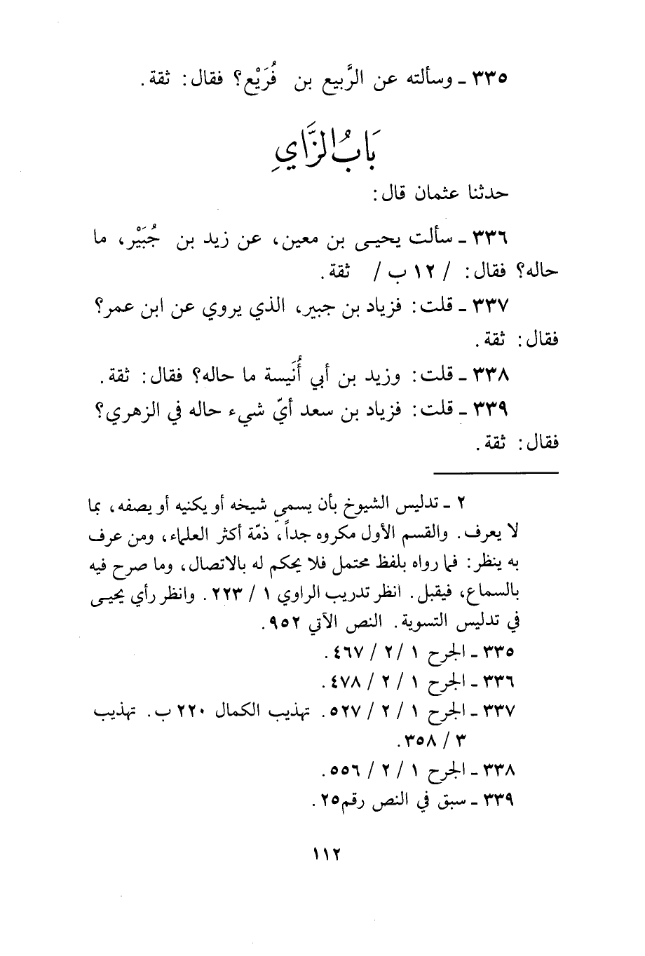 336 - سَأَلت يحيى بن معِين عَن زيد بن جُبَير مَا حَاله فَقَالَ ثِقَة