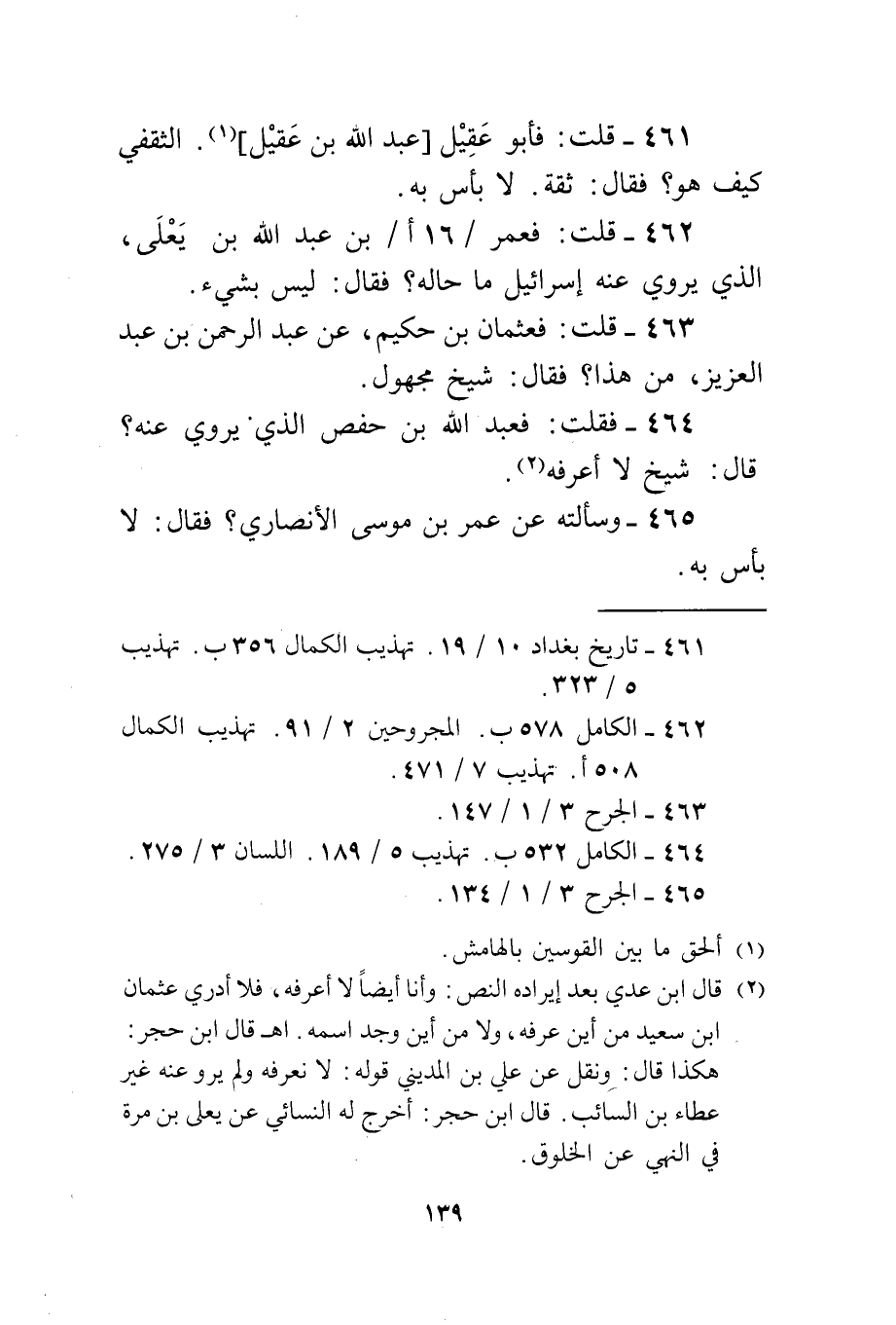 463 - قلت فعثمان بن حَكِيم عَن عبد الرَّحْمَن بن عبد الْعَزِيز من هَذَا فَقَالَ شيخ مَجْهُول