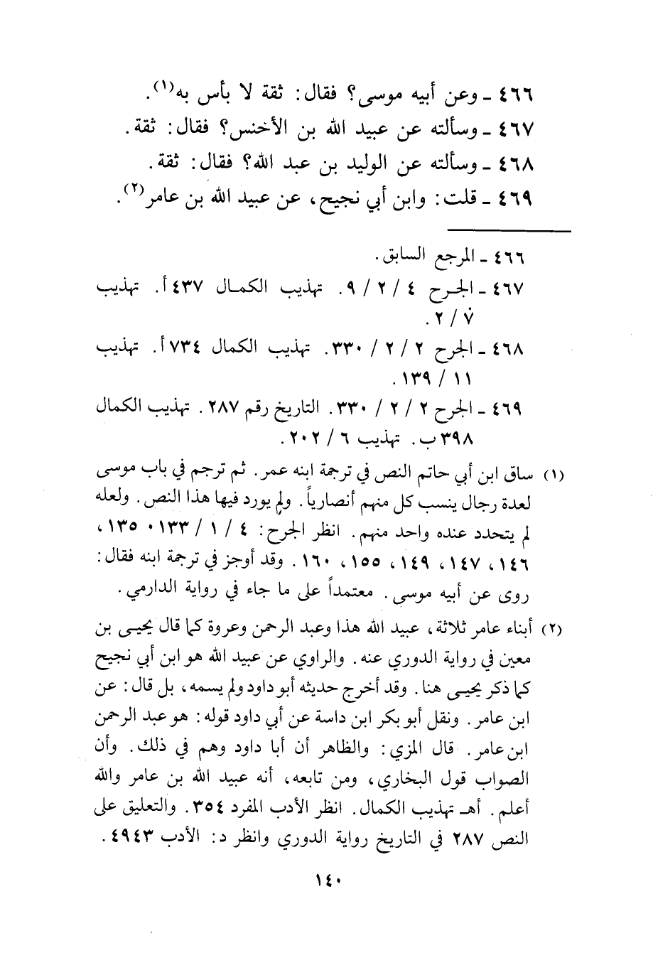 469 - قلت وَابْن أبي نجيح عَن عبيد الله بن عَامر عَن عبد الله بن عَمْرو من عبيد الله فَقَالَ هُوَ ثِقَة