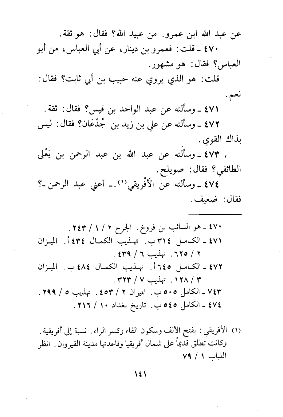 474 - وَسَأَلته عَن الأفريقي أَعنِي عبد الرَّحْمَن فَقَالَ ضَعِيف
