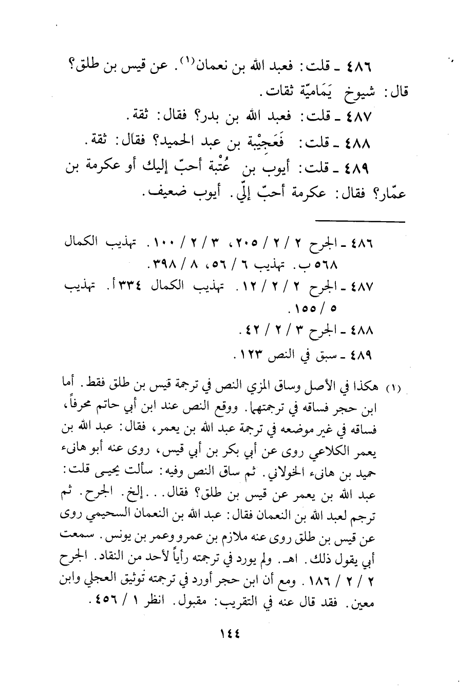 489 - قلت أَيُّوب بن عتبَة أحب إِلَيْك أَو عِكْرِمَة بن عمار فَقَالَ عِكْرِمَة أحب إِلَيّ أَيُّوب ضَعِيف