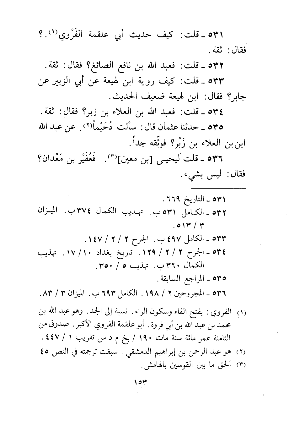 535 - حَدثنَا عُثْمَان قَالَ سَأَلت دحيما عَن عبد الله بن بن الْعَلَاء بن زبر فوثقه جدا