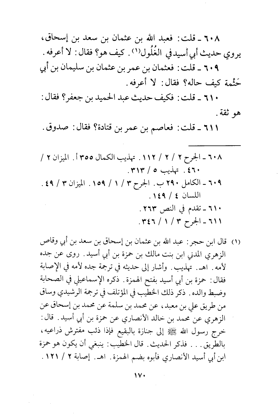 608 - قلت فعبد الله بن عُثْمَان بن سعد بن إِسْحَاق يروي حَدِيث أبي أسيد فِي الْغلُول كَيفَ هُوَ فَقَالَ لَا أعرفهُ