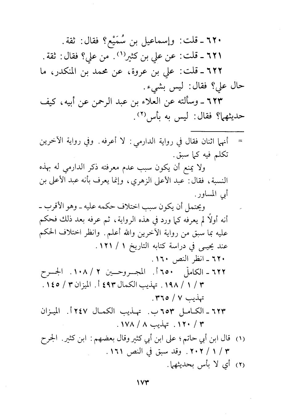 623 - وَسَأَلته عَن الْعَلَاء بن عبد الرَّحْمَن عَن أَبِيه كَيفَ حَدِيثهمَا فَقَالَ لَيْسَ بِهِ بَأْس