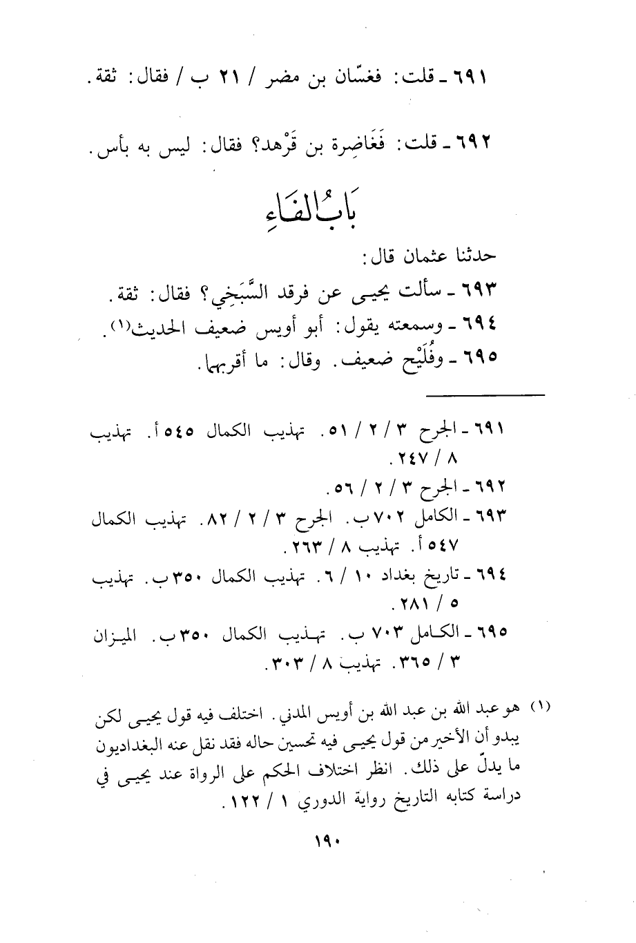 694 - وسمعته يَقُول أَبُو أويس ضَعِيف الحَدِيث
