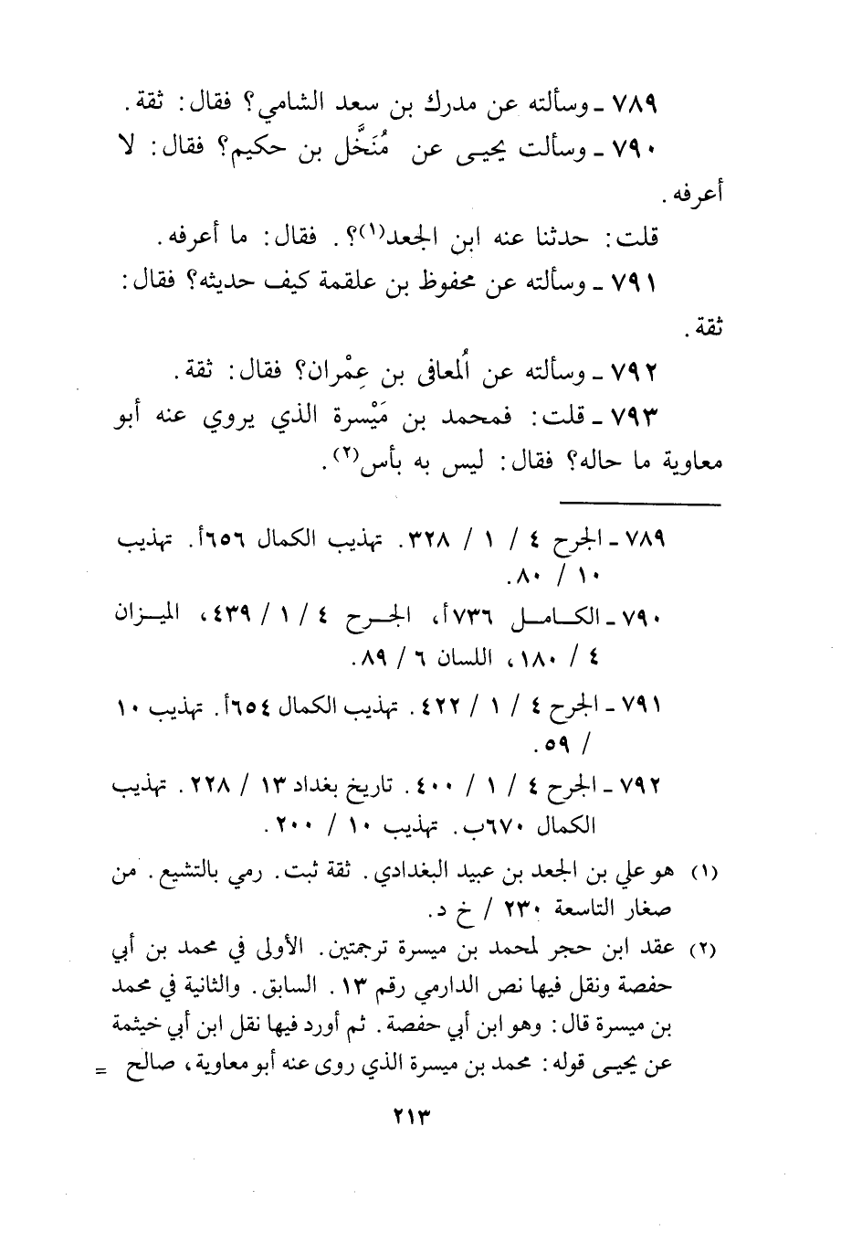 792 - وَسَأَلته عَن الْمعَافي بن عمرَان فَقَالَ ثِقَة