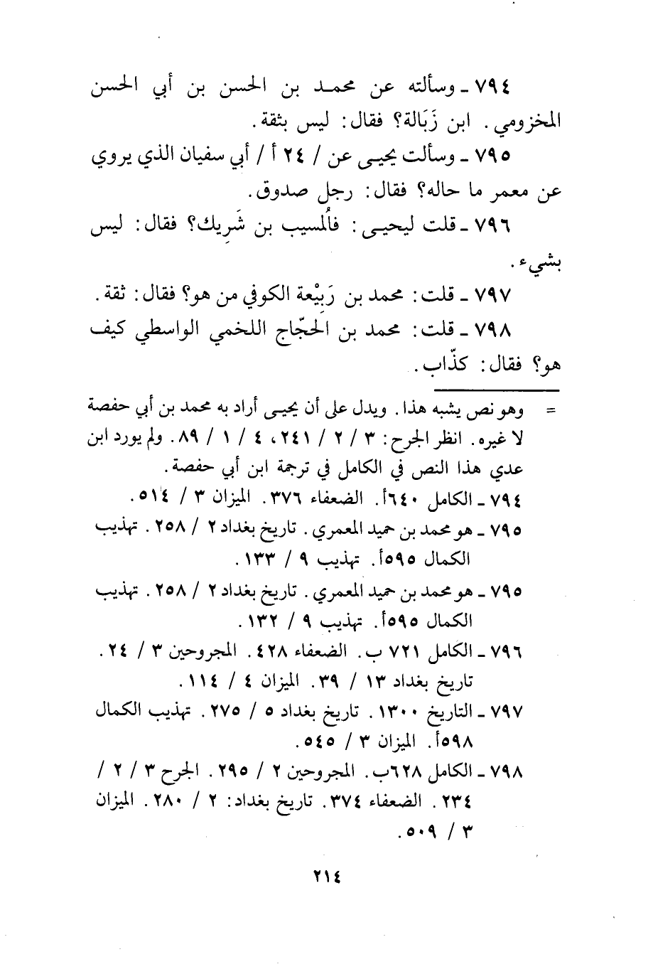 798 - قلت مُحَمَّد بن الْحجَّاج اللَّخْمِيّ الوَاسِطِيّ كَيفَ هُوَ فَقَالَ كَذَّاب