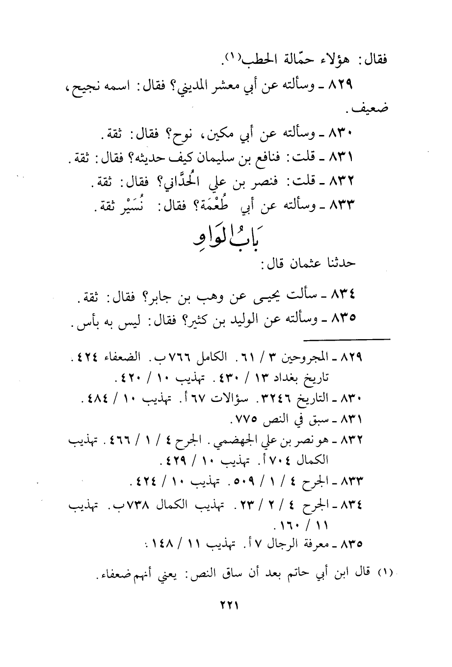 835 - وَسَأَلته عَن الْوَلِيد بن كثير فَقَالَ لَيْسَ بِهِ بَأْس