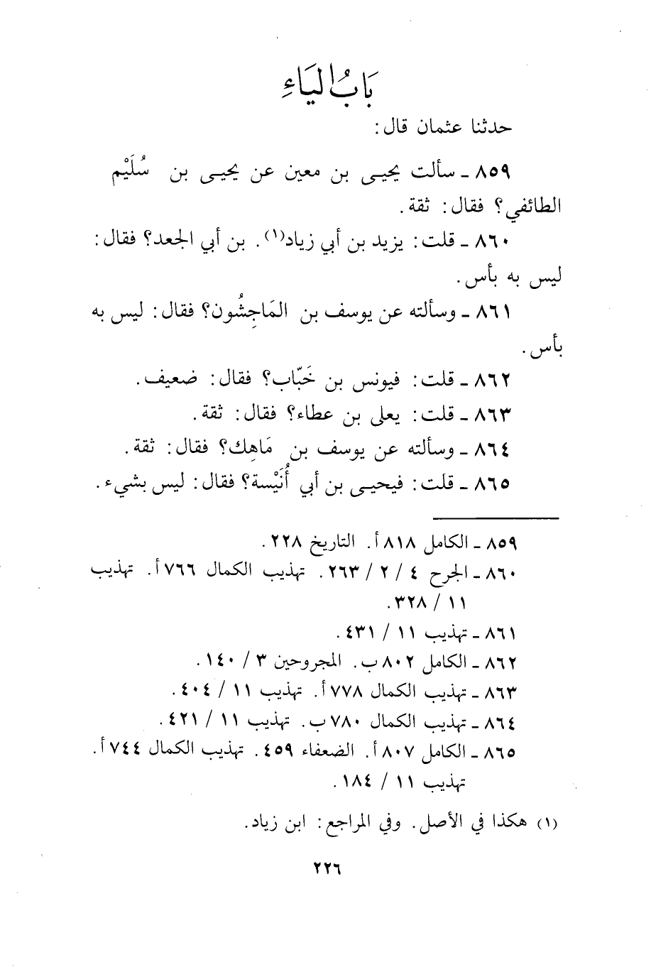 859 - سَأَلت يحيى بن معِين عَن يحيى بن سليم الطَّائِفِي فَقَالَ ثِقَة