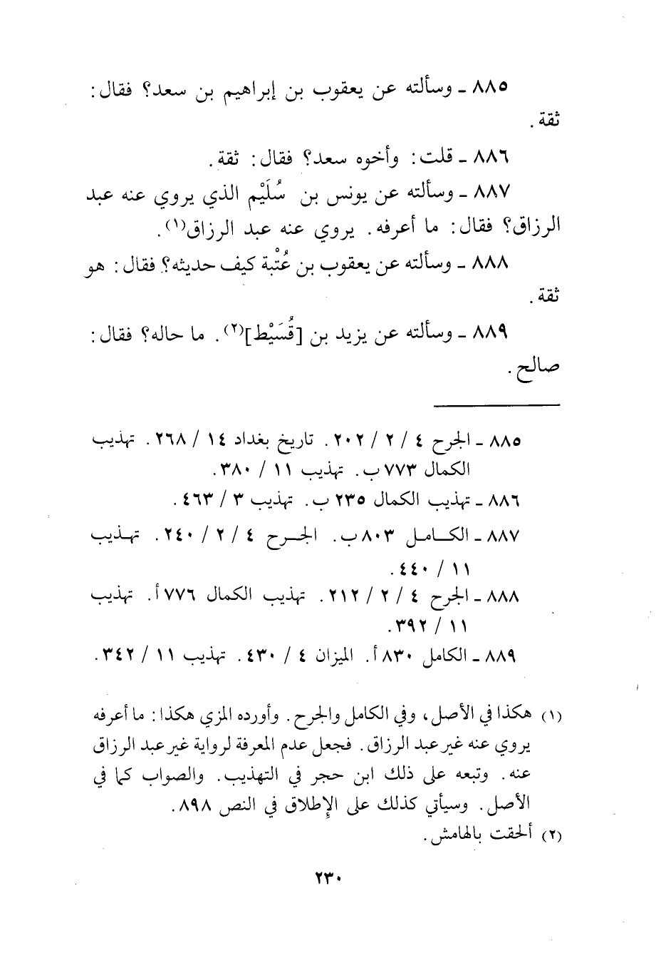889 - وَسَأَلته عَن يزِيد بن قسيط مَا حَاله فَقَالَ صَالح